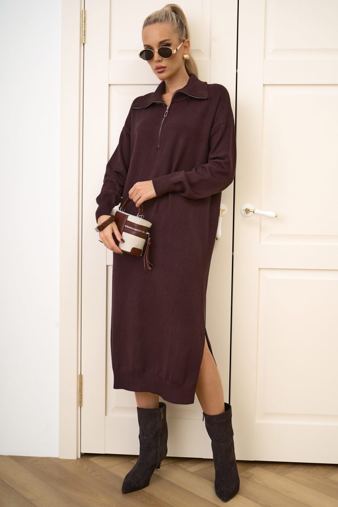Состав: Шерсть – 70%, п/э – 20, хлопок – 10% Описание Уютное и элегантное платье прямого силуэта из мягкого трикотажа с содержанием шерсти. Теплое, но дышащее, держит форму и не стесняет движений. Уни... Показать описаниеверсальные цвета легко сочетаются с аксессуарами и обувью любого стиля. Длина ниже колена визуально вытягивает силуэт, а лаконичный вырез и длинный рукав делают модель практичной для работы, прогулок и встреч. Минимализм кроя подчеркивает качество материала и дарит безупречный комфорт каждый день. Материал: трикотаж – теплый, мягкий, держит форму. Фактура: вязаный трикотаж, приятный к телу, с аккуратной посадкой. Цвет: универсальный шоколадный, легко комбинируется с аксессуарами. Силуэт: прямой, лаконичный, не сковывает движения. Длина: ниже колена – вытягивает фигуру, делает образ элегантным. Рукава: длинные, комфортные под верхнюю одежду. Вырез: круглый, минималистичный. Стиль: базовый, подходит для офиса, прогулок и повседневных образов.
