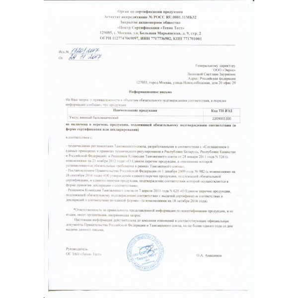Дата изготовления: 12.03.2025 Срок годности: 12.03.2028 Бальзамический уксус 6% Galaxy. Использование Бальзамический уксус добавляют в салаты, супы, десерты, даже в маринады для мяса и рыбы. Внимание ... Показать описаниедля аллергиков: содержит Сульфиты. Состав: виноградный уксус, концентрированное сусло, краситель: E150d, консервант: метабисульфит. Энергетическая ценность на 100г - 91 Ккал (385 КДж). Углеводы - 22г, Жиры - 0г, Белки - 0,6г. Сахара - 15,5г. Рекомендации по хранению Открытый уксус рекомендуется хранить в холодильнике. Возможно выпадение осадка, что является нормой. Производитель: S.Mavidou & Sons O.E., Василика 57 006, Салоники, Греция. Объём: 250 мл. Вес брутто: 560 грамм. Упаковка - стеклянная бутылка из темного стекла.