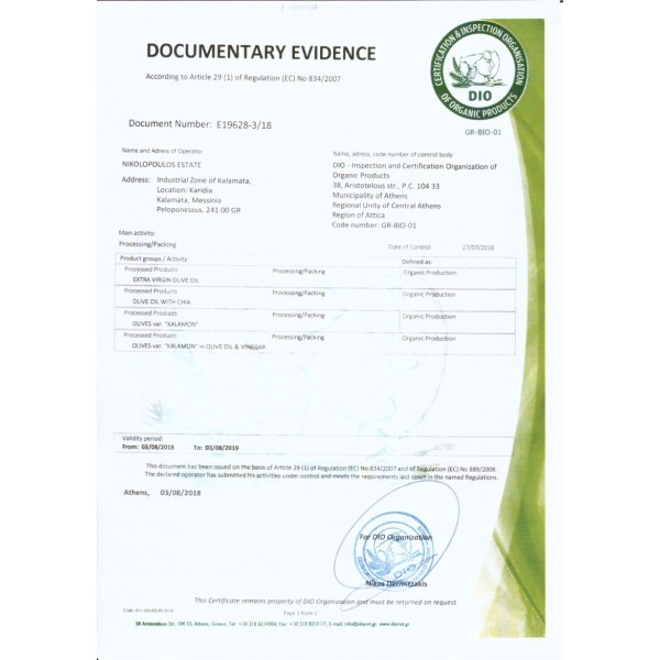 Дата изготовления: 30.11.2024 Срок годности: 30.05.2026 Масло оливковое нерафинированное высшего качества органическое ОЛИВИ ПЛАТИНУМ 0.2%. Extra Virgin Organic Not Filtered Olive Oil OLIVI PLATINUM 0... Показать описание.2%). Первый холодный отжим. Агурелио - свежее оливковое масло. Лечебный эффект Агурелио ( греч. ??????????, ?????? - неспелый,  ????? - оливковое масло) - оливковое масло, отжатое при низкой температуре из ещё зелёных оливок сорта Коронейка. Агурелио - самое ценное из всех видов оливкового масла. Его отжимают очень мало и только для внутреннего потребления. Пищевая ценность масла Агурелио превосходит обычное масло класса extra virgin. Благодаря свежести оно содержит гораздо больше антиоксидантов и ни с чем не сравнимый уникальный аромат молодой зеленой листвы. Отличается богатым фруктовым и пикантным вкусом с характерной горчинкой и насыщенным зелёным цветом. Именно такое масло по праву называют соком оливы. Масло Агурелио содержит все витамины и провитамины оливковых плодов, минералы и полифенолы, которые защищают клетки от окислительного стресса,  активного кислорода и свободных радикалов. Агурелио - это сезонное масло, его можно отведать лишь до весны, потом оно превращается в категорию  Extra Virgin. Традиционно греки отжимают масло Агурелио с конца октября и используют его для собственного потребления, а также для улучшения вкусовых и ароматических свойств остатков прошлогоднего масла extra virgin. Фермерское оливковое масло Весь процесс производства масла, начиная от сбора оливок и заканчивая розливом в бутылки, осуществляется вручную в фермерском хозяйстве Николопулос Эстейт. В наш стремительный век у Вас есть хорошая возможность прикоснуться к полностью натуральному продукту, хранящему тепло человеческих рук. Продукт плодородной земли Мессинии Оливки сорта Коронейки для изготовления масла Olivi собирают на юго-западе Пелопоннеса, в области Мессиния со столицей в городе Каламата, прославившемся своим уникальным географическим положением и климатическими условиями. Оливковые рощи располагаются там в непосредственной близости от моря, но за невысокими горами. Кажется, сама Природа создала этот райский уголок для выращивания сочных, маслянистых оливок, из которых благодарные греческие крестьяне изготавливают одно из самых лучших оливковых масел в мире. ОРГАНИЧЕСКОЕ оливковое масло Органическое оливковое масло производится только из олив, культивируемых исключительно традиционными методами без применения химических веществ и удобрений. Удостоверенно печатью греческого правительства, а его биокультивация подтверждена греческой организацией сертификации органической продукции. Узнать больше об органических продуктах можно из нашей статьи. Изысканный фруктовый вкус Попробовав лишь раз, Вы не останетесь равнодушными к необыкновенному насыщенному фруктовому аромату этого оливкового масла с легкой перчинкой в послевкусии. Кислотность Свежее оливковое масло "Оливи ПЛАТИНУМ" обладает природно низкой кислотностью, не превышающей 0.2%. Видео с дегустации урожая 2018г. Состав: Оливковое масло нерафинированное первого холодного отжима (Extra Virgin). Пищевая ценность в 100 мл продукта: Энергетическая ценность: 793 кКал / 3314 кДж. белки – 0 г; углеводы – 0 г; жиры - 95 г. Из них: * насыщенных жиров 14 г, * мононенасыщенных жирных кислот 74 г, * полиненасыщенных жирных кисл
