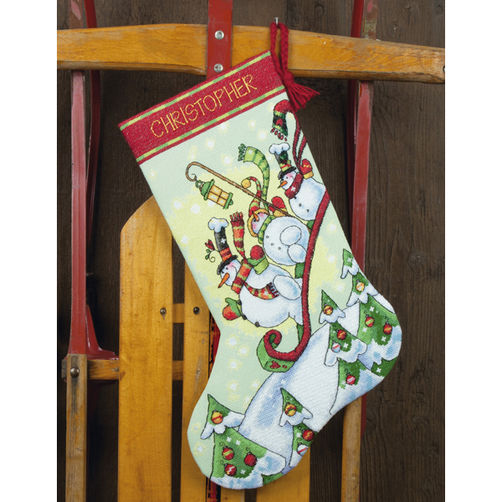 Набор для вышивания "DIMENSIONS" 70-08853   "Сапожок. Снеговики на санках"