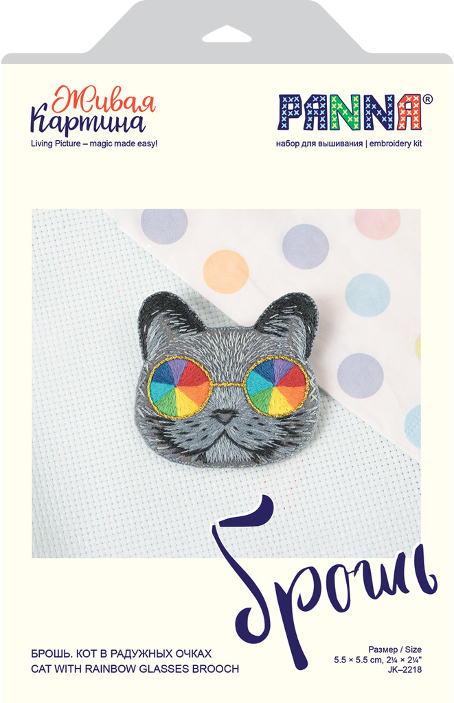 Набор для вышивания "PANNA" "Живая картина" JK-2218 "Брошь. Кот в радужных очках" Вопросы по товару