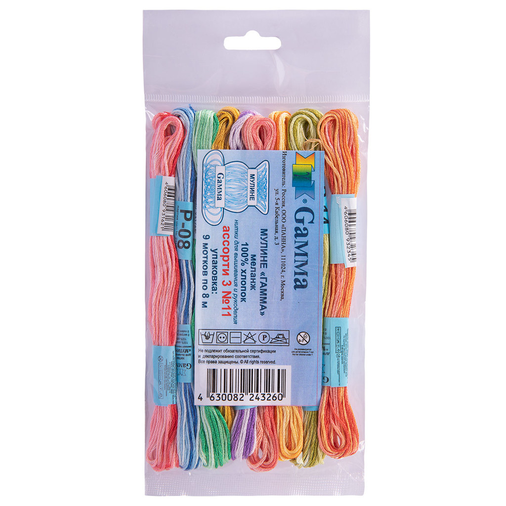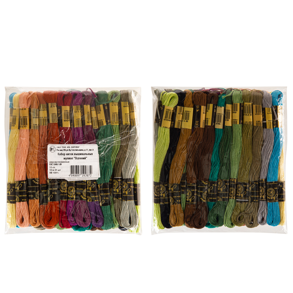 Нитки для вышивания "ПНК им. Кирова" мулине ассорти 100% хлопок 25 цв. x 10 м