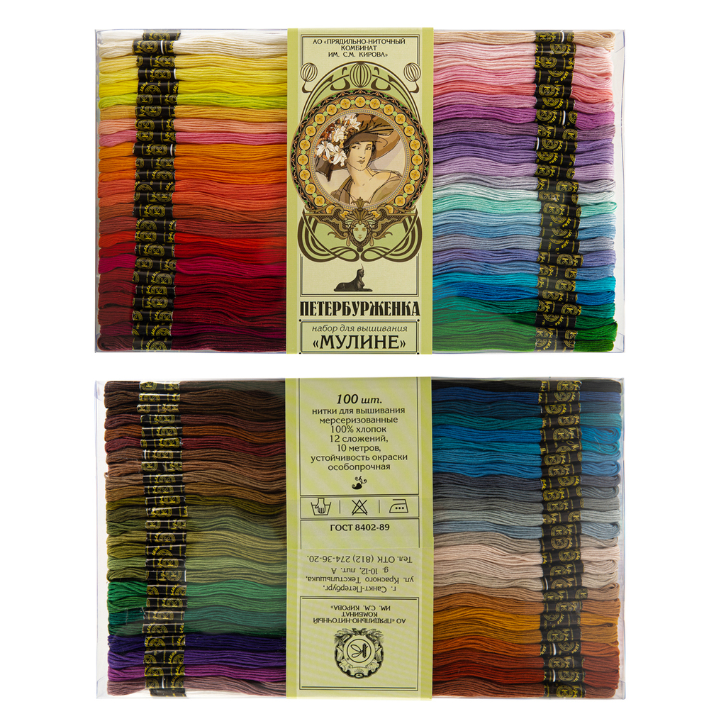 Нитки для вышивания "ПНК им. Кирова" мулине 100% хлопок 100 цв. x 10 м