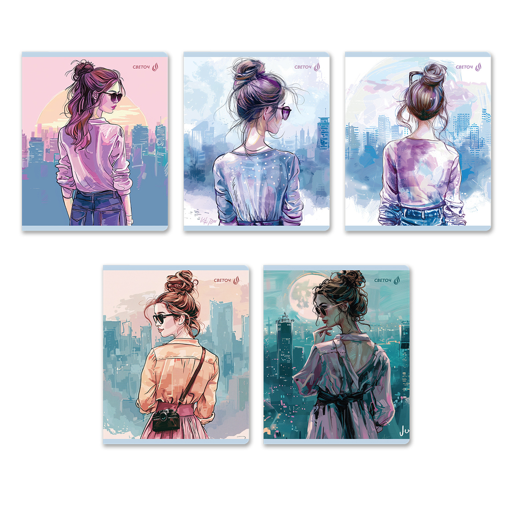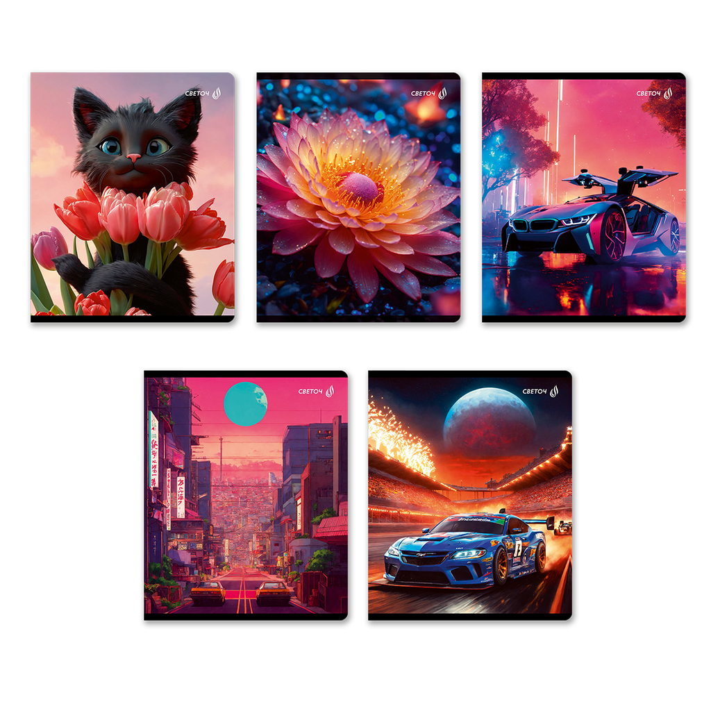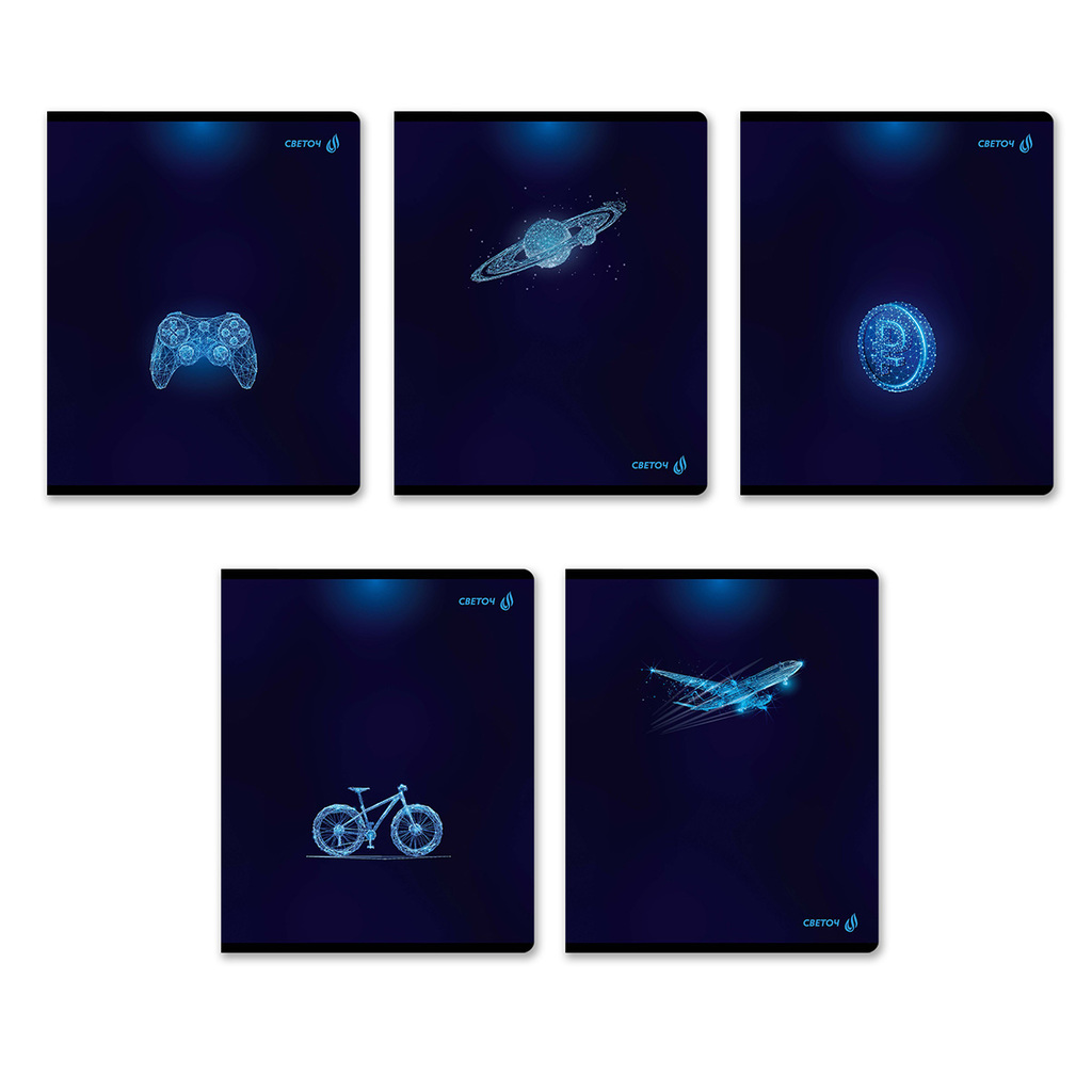 "Светоч"   96Т17   Тетрадь ученическая общая, софт-тач ламинация + выборочный лак,   A5+   96 л.  на скобе   65 г/кв.м , белизна 100 \%  5 шт.  клетка