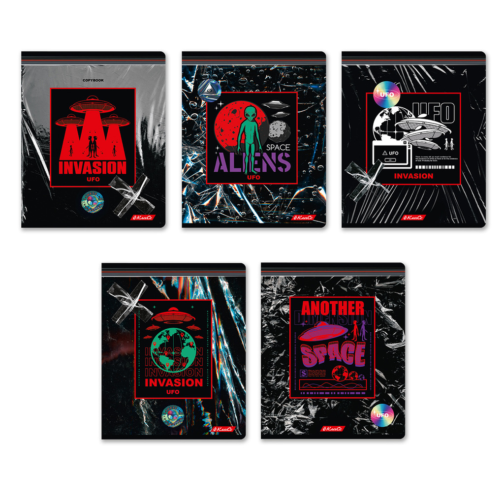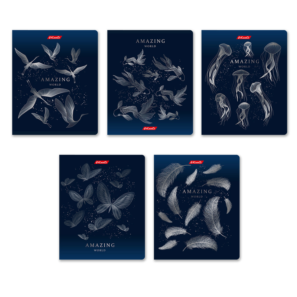 "Светоч"   96ТЕТк-007   Тетрадь ученическая общая, матовая ламинация + тиснение серебряной фольгой,   A5+   96 л.  на скобе   60 г/кв.м , белизна 100 \%  5 шт.  клетка