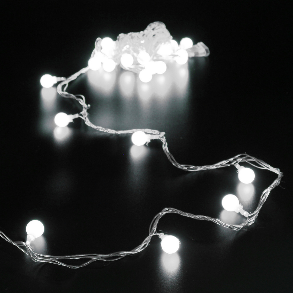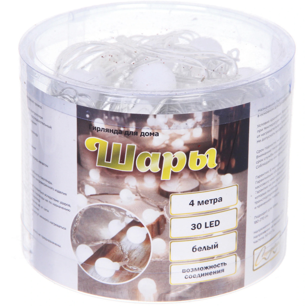 Гирлянда для дома 4м 30 ламп LED с насадками ШАРЫ 1,6 см, прозрачн. пров. 8 реж, IP-20 Белый (возможность соединения) (ПЕРВАЯ ЦЕНА)Вопросы по товару
