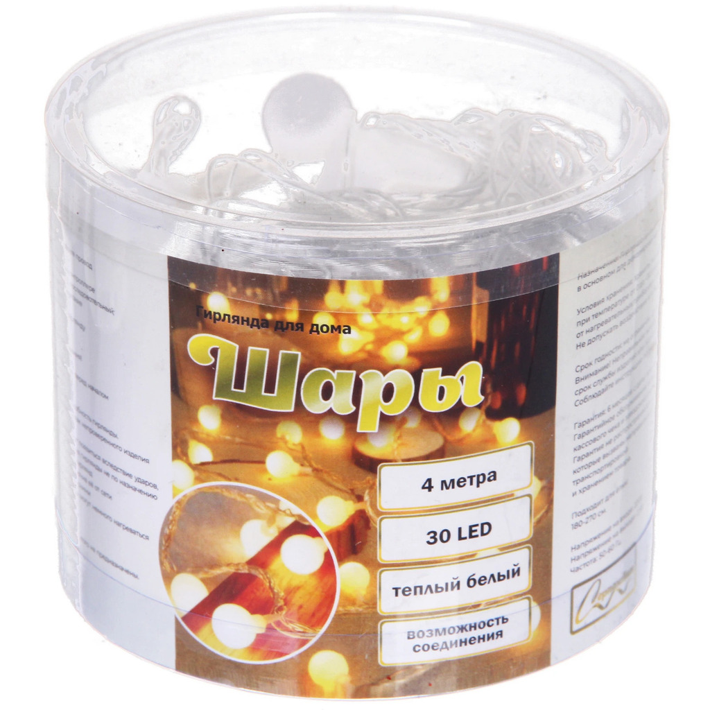 Гирлянда для дома 4м 30 ламп LED с насадками ШАРЫ 1,6 см, прозрачн. пров. 8 реж, IP-20 Теплый белый (возможность соединения) (ПЕРВАЯ ЦЕНА)Вопросы по товару