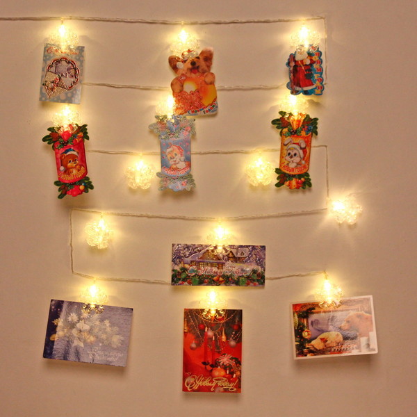 Гирлянда для дома 4,0 м 20 ламп LED с насадками СНЕЖИНКА Прищепка, прозрач.провод, Теплый белыйВопросы по товару