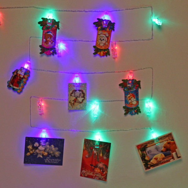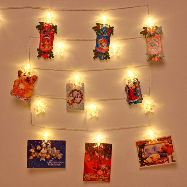 Гирлянда для дома 4,0 м 20 ламп LED с насадками ЗВЕЗДА Прищепка, прозрач.провод, МультицветВопросы по товару