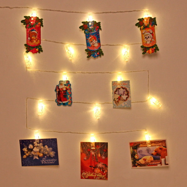 Гирлянда для дома 4,0 м 20 ламп LED с насадками ПРИЩЕПКА, прозрач.провод, IP-20, Теплый белыйВопросы по товару