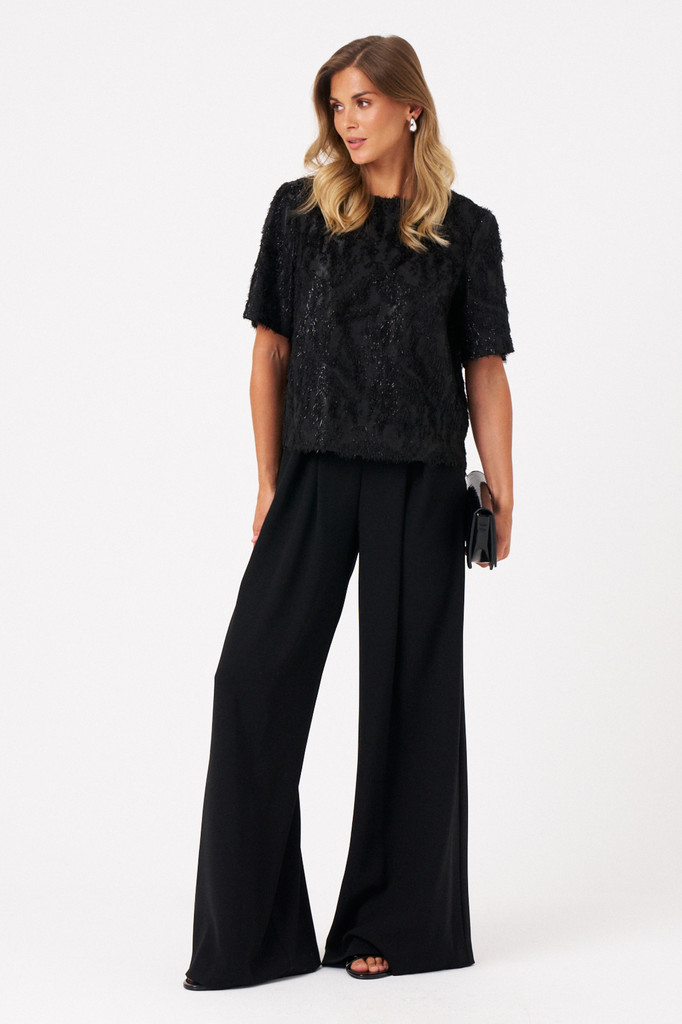 Описание Это женская блузка из поливискозной ткани с лёгки блеском и ворсом. Модель выполнена в прямом силуэте и отличается оригинальным материалом, напоминающим травку, что придает ей свежий и необыч... Показать описаниеный внешний вид. Перед с двумя нагрудными вытачками, которые подчеркивают линию груди и обеспечивают аккуратную посадку. Спинка с средним швом и застежкой-капелькой обеспечивает удобство надевания и комфорт в носке. Горловина чуть расширена, что добавляет образу легкости и элегантности. Короткие втачные рукава делают блузку практичной и универсальной для повседневных образов. Блузка выполнена на трикотажной подкладке, что обеспечивает дополнительный комфорт. Блузка для повседневной либо торжественной носки. Благодаря черному цвету она отлично подходит для создания стильных и комфортных повседневных луков. Параметры Рост: 164 Состав и уход Состав: Блузка: Полиэстер/polyester 85%; вискоза/viscose 15%.; Подкладка: Полиэстер/polyester 97%; эластан/elastane 3%. Уход: * Стирка при температуре воды до 30°C * Не отбеливать * Гладить при температуре утюга до 110°C * Вертикальная сушка * Барабанная сушка запрещена * Профессиональная сухая чистка в тетрахлорэтилене и во всех растворителях, внесенных в список для символа F.