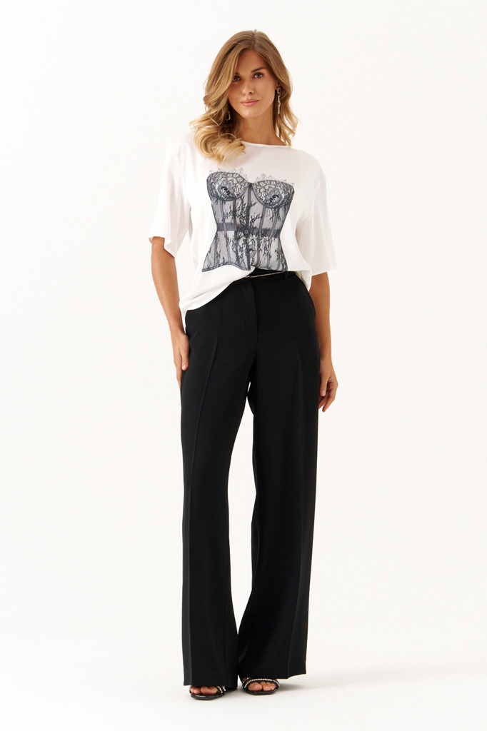 Описание Женская блузка из струящейся ткани молочного цвета. Стильная и удобная блузка прямого силуэта создана из легкой струящейся ткани, идеально подходящей для ежедневного образа. Расширенная горло... Показать описаниевина добавляет модели женственности и комфорта, а рукава длиной до локтя делают блузку универсальной для разных сезонов. Особенностью изделия является дизайнерская печать на передней части в виде изящного корсета, которая придаёт образу утонченность и оригинальность. Отличный выбор для создания нежного и элегантного повседневного стиля. Параметры Рост: 164 44 Блузка: Длина изделия по спинке - 58см, Длина рукава - 26см, Ширина по груди - 53см, Ширина по низу - 51см, Ширина рукава - 18.5см; 46 Блузка: Длина изделия по спинке - 58см, Длина рукава - 26см, Ширина по груди - 55см, Ширина по низу - 53см, Ширина рукава - 19см; 48 Блузка: Длина изделия по спинке - 58.5см, Длина рукава - 26см, Ширина по груди - 57см, Ширина по низу - 55см, Ширина рукава - 20см; 50 Блузка: Длина изделия по спинке - 59см, Длина рукава - 26см, Ширина по груди - 59см, Ширина по низу - 57см, Ширина рукава - 21см; 52 Блузка: Длина изделия по спинке - 59.5см, Длина рукава - 26см, Ширина по груди - 61см, Ширина по низу - 59см, Ширина рукава - 22см; 54 Блузка: Длина изделия по спинке - 60см, Длина рукава - 26см, Ширина по груди - 63см, Ширина по низу - 61см, Ширина рукава - 23см; Состав и уход Состав: Полиэстер/polyester 97%; эластан/elastane 3%. Уход: * Стирка при температуре воды до 30°C * Не отбеливать * Гладить при температуре утюга до 110°C * Вертикальная сушка * Барабанная сушка запрещена * Профессиональная сухая чистка в тетрахлорэтилене и во всех растворителях, внесенных в список для символа F.