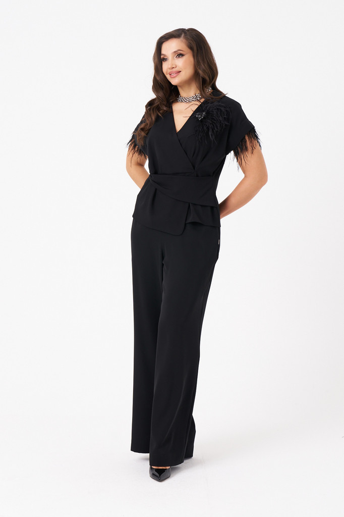 Описание Это женская блузка из поливискозной струящейся ткани, подходящая для торжественных мероприятий. Блузка полуприлегающего силуэта. Блузка отрезная по линии талии. Верхняя часть блузки на запах ... Показать описаниес небольшими складками, а также имеется рельеф, идущий от линии плеча до отрезной линии по талии. Нижняя часть блузки имеет декоративную деталь, а также имитацию баски. Спинка со средним швом. Горловина V-образная. Линия плеча спущенна. Проймы обработаны обтачками и украшены перьями. Которые крепятся на тесьму с кнопками и есть возможность их остегнуть при необходимости либо для стирки блузки. За счёт съёмных перьев можно создавать различные образы как для торжественных случаев так и для других мероприятий. В данной блузке вы будете смотреться очень очаровательно ведь она отлично подчеркнет все ваши достоинства и скроет имеющиеся недостатки. Брошь в комплекте не идёт! Параметры Рост: 164 44 Блузка: Длина изделия - 56см, Ширина плеча - 24см, Ширина по груди - 51см, Ширина по низу - 50см, Ширина по талии - 43см, Ширина рукава - 18.4см; 46 Блузка: Длина изделия - 56см, Ширина плеча - 24.5см, Ширина по груди - 53см, Ширина по низу - 52см, Ширина по талии - 45см, Ширина рукава - 19.2см; 48 Блузка: Длина изделия - 56см, Ширина плеча - 25см, Ширина по груди - 55см, Ширина по низу - 54см, Ширина по талии - 47см, Ширина рукава - 21см; 50 Блузка: Длина изделия - 57см, Ширина плеча - 25.5см, Ширина по груди - 57см, Ширина по низу - 56см, Ширина по талии - 49см, Ширина рукава - 21.8см; 52 Блузка: Длина изделия - 57см, Ширина плеча - 26см, Ширина по груди - 59см, Ширина по низу - 58см, Ширина по талии - 51см, Ширина рукава - 22.6см; 54 Блузка: Длина изделия - 57см, Ширина плеча - 26.5см, Ширина по груди - 61см, Ширина по низу - 60см, Ширина по талии - 53см, Ширина рукава - 23.4см; Состав и уход Состав: Полиэстер 65%; вискоза 32%; эластан 3%. Уход: * Стирка при температуре воды до 30°C * Не отбеливать * Гладить при температуре утюга до 110°C * Вертикальная сушка * Барабанная сушка запрещена * Профессиональная сухая чистка в тетрахлорэтилене и во всех растворителях, внесенных в список для символа F.