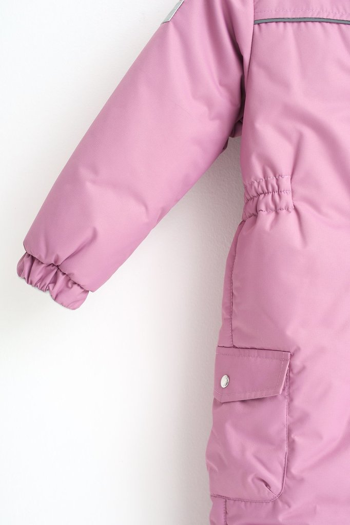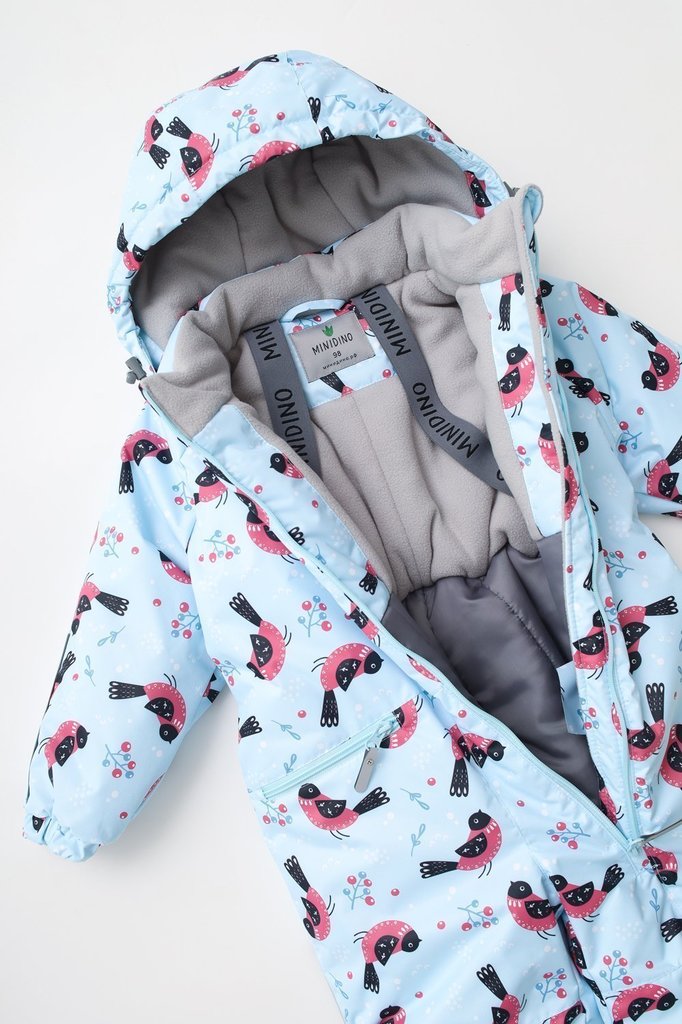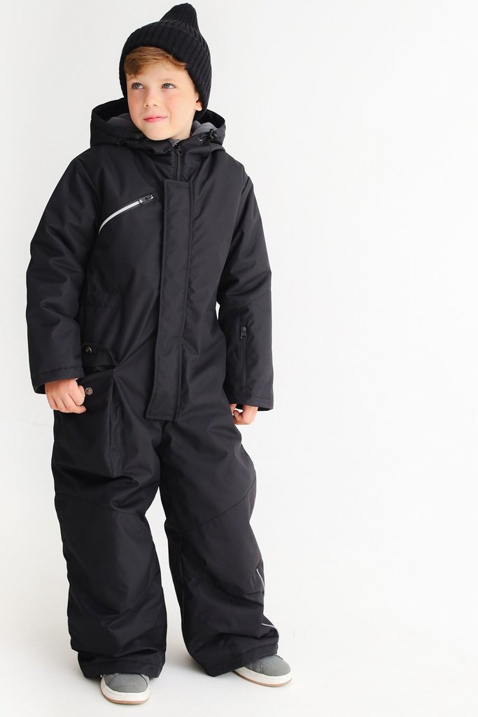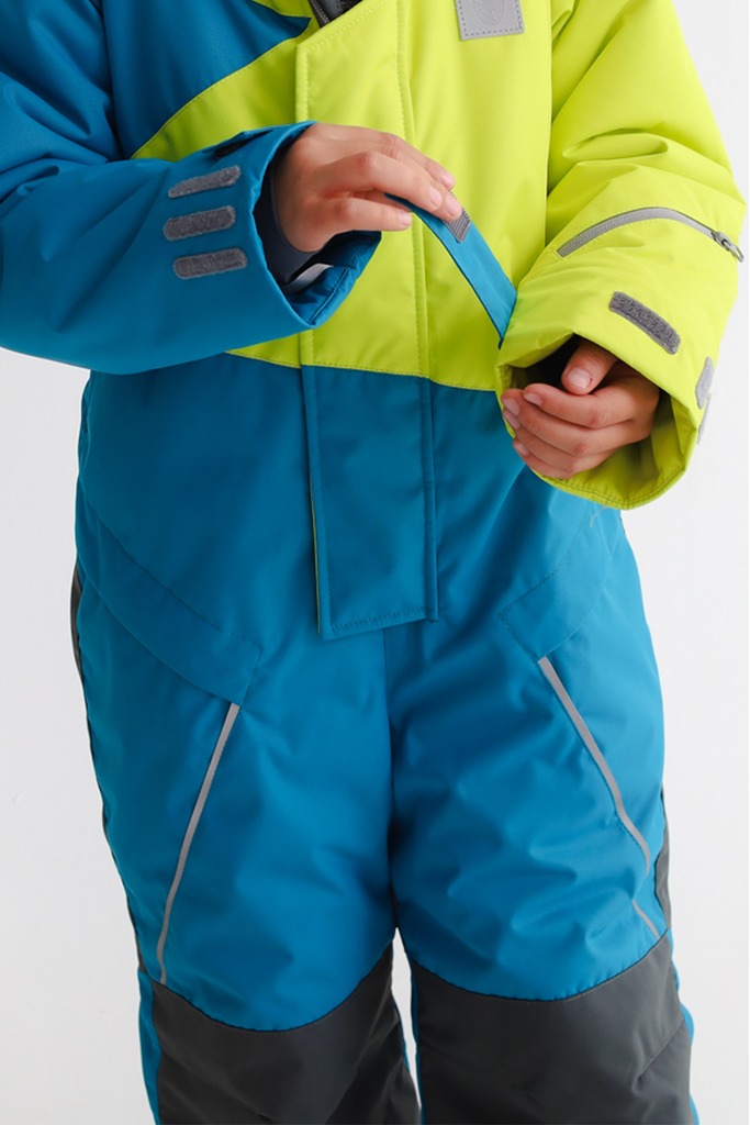Комбинезон зимний с наклонной застежкой на молнию. Внутренний ветрозащитный клапан с защитой подбородка от защемления. Рукав-реглан, низ рукава обработан манжетой на резинке.Спереди прорезной карман ... Показать описаниена молнии. По спинке кулиса с резинкой по талии. Низ брюк на противоскользящей резинке. Воротник-стойка, капюшон втачной с утяжкой на шляпную резину. Лямки-помочи дают возможность легко скинуть верхнюю часть комбинезона в помещении. Световозвращающие элементы для безопасности в любое время суток. Фирменная брендированная нашивка Minidino.Примерный температурный режим от -5°С до -30°С.