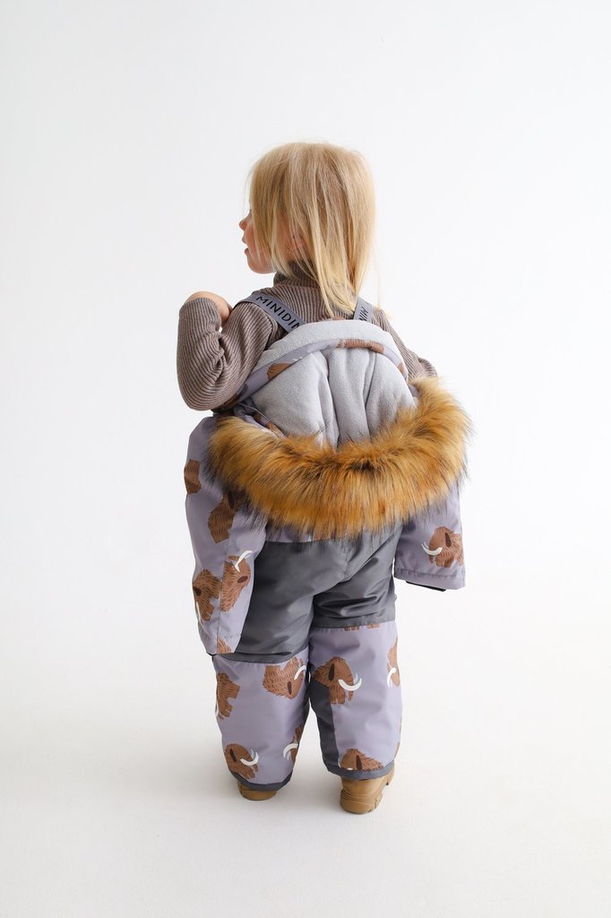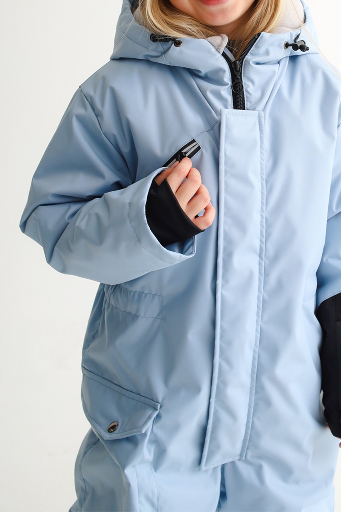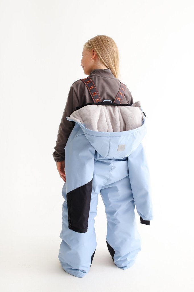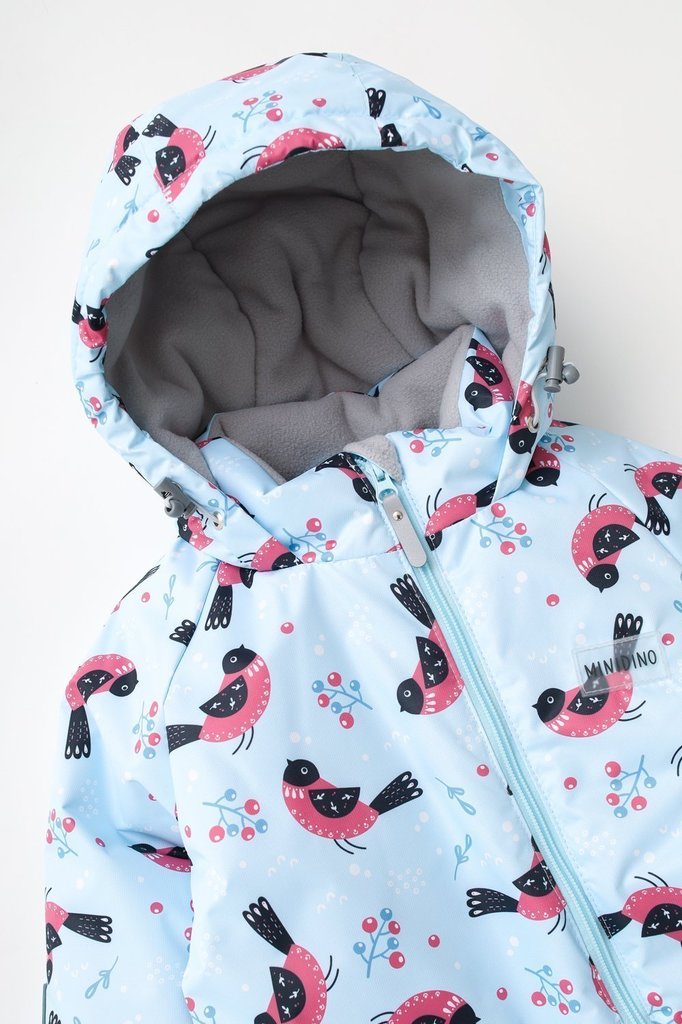 Мембранная ткань с высокими показателями для активного спорта. Съемный капюшон на кнопках с утяжками для защиты от ветра. Высокий воротник-стойка. Застежка на молнию с ветрозащитной планкой на липучка... Показать описаниех. Лямки-резинки (дают возможность легко скинуть верхнюю часть в помещении). Карманы по бокам и карман на молнии на левом рукаве. Усиление задней части, внутренней и нижний части штанин (беспрепятственно познаем мир). Внутренние манжеты штанин на антискользящих резинках. Рукава с патами и манжетами из бифлекса. Именная нашивка. Световозвращающие элементы (безопасность в любое время суток). Фирменные элементы MINIDINO. Примерный температурный режим от -7°С до -30°С.