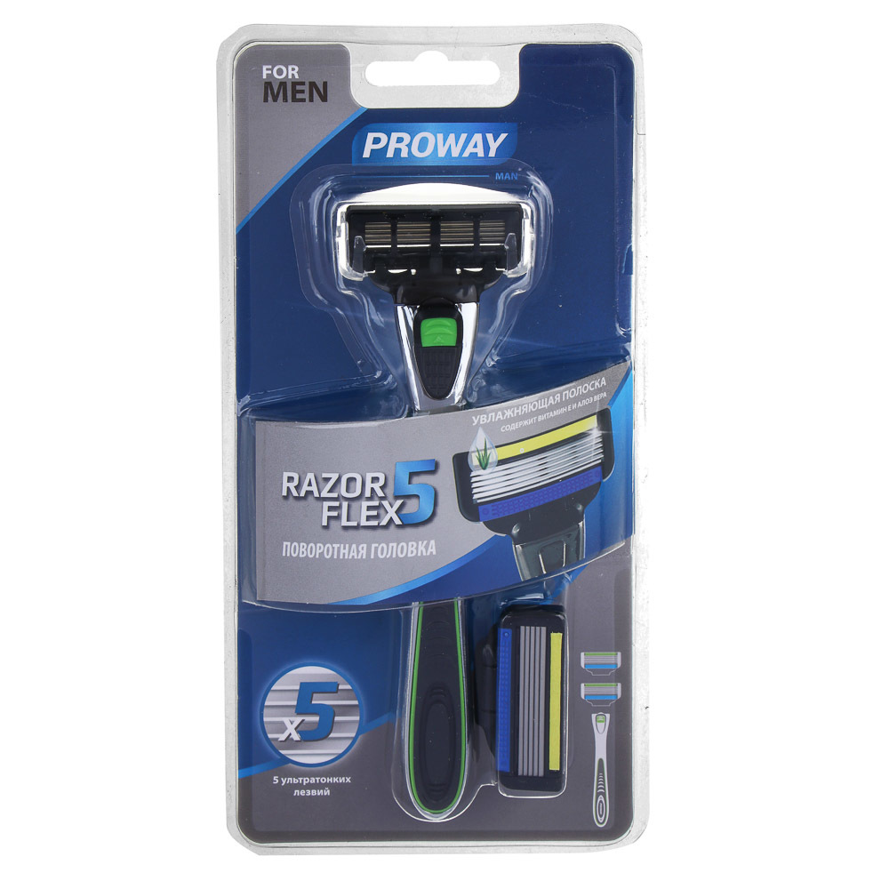 PROWAY Станок для бритья мужской(5 лезвий) + 2 сменных кассеты, пластик