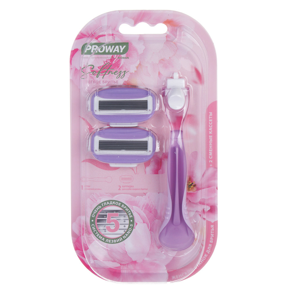 PROWAY Станок для бритья женский (5 лезвий) + 2 сменных кассеты, пластик