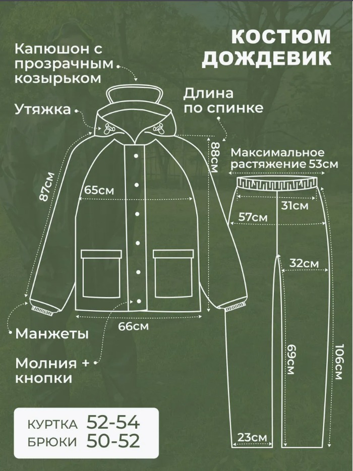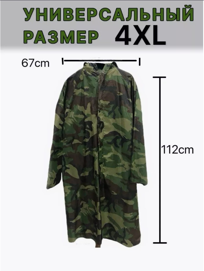 Дождевик милитари мужской это верхняя одежда, предназначенная для защиты от непогоды, длительного воздействия воды,дождя и грязи, а также всевозможных агрессивных сред. Средство защиты изготавливается... Показать описание из специальной смесовой ткани из полиэстра пвх имеющую водостойкость 3000 мм. Дождевик оснащен капюшоном с козырьком и хлястиками, что является дополнительной защитой от пыли, грязи, комаров. Плащ также имеет светоотражающие элементы, которые повышают видимость в условиях плохой освещенности, и карманы для удобства хранения мелочей.