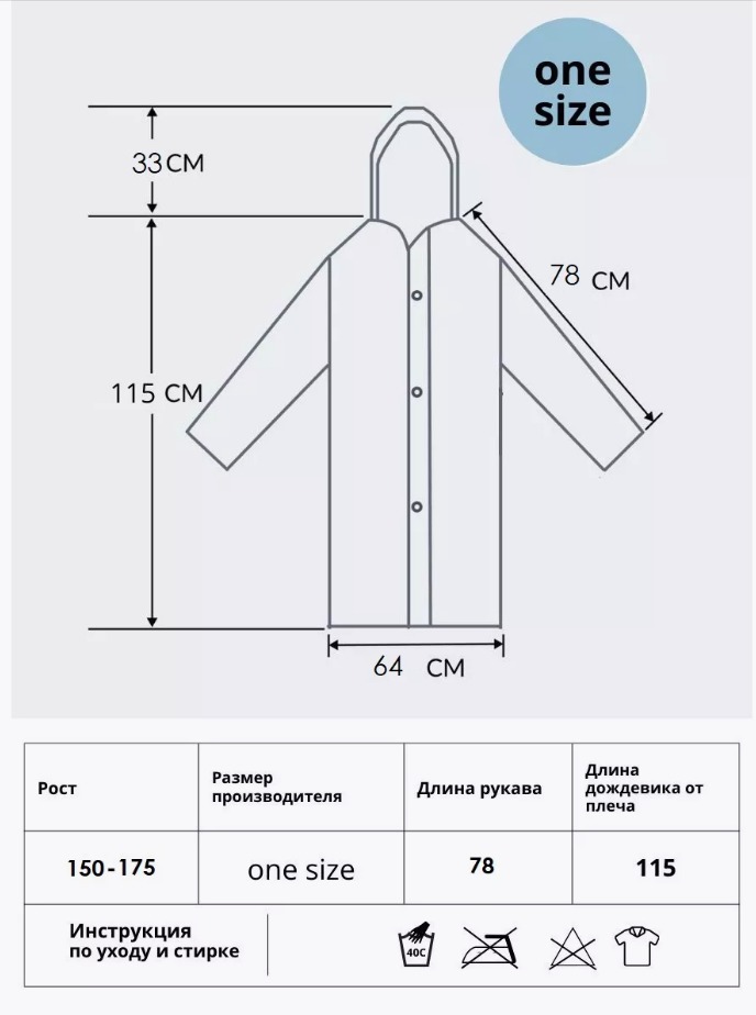Многоразовый дождевик универсального размера. Будьте готовы к любым погодным сюрпризам с нашим универсальным плащом-дождевиком! Этот стильный и практичный аксессуар обеспечит вам надежную защиту от до... Показать описаниеждя, ветра, влажной погоды сохраняя комфорт и свободу движений.