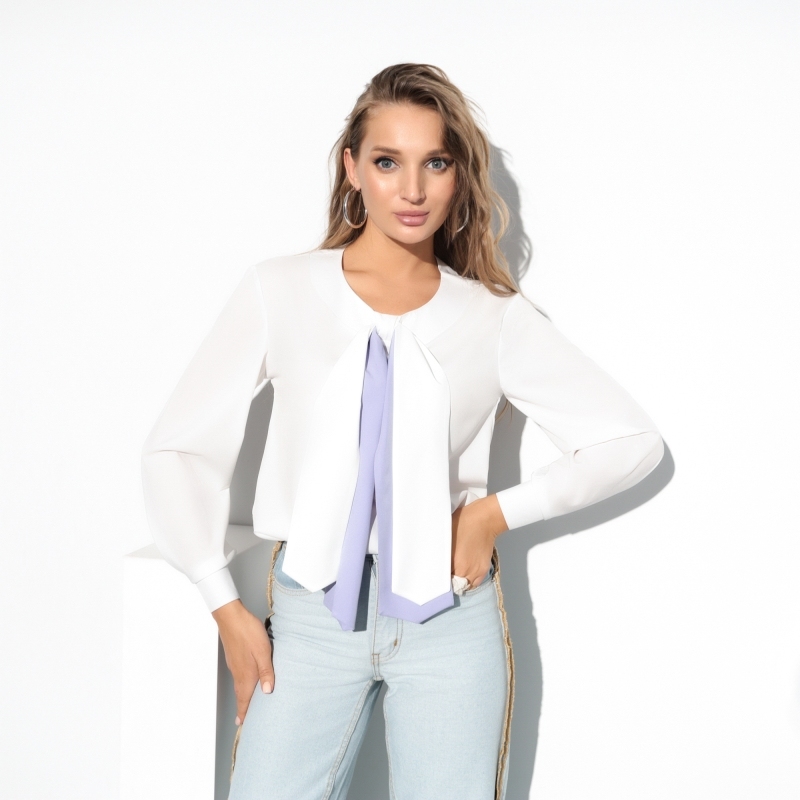 ТН ВЭД: 6206400000. Состав: «Ниагара» (95% п/э, 5% эластан) Плотность ткани: Тонкая. Тип ткани: Текстиль. Вид застежки: Пуговица. Дополнительный цвет ткани: Сиреневый. Карманы: Нет. Основной цвет ткан... Показать описаниеи: Белый. Отрезная талия: Нет. Подклад: Нет. Резинка по талии: Нет. Рисунок/раппорт: Нет, все изделия идентичны Сезон: Круглогодичный. Силуэт: Свободный. Стиль: Классический. Параметры модели на фото: Грудь: 90 см. Талия: 65 см. Бёдра: 91 см. Рост: 168 см. Размер на модели: 44. Длина изделия: * 42 размер - 61 см. * 44 размер - 61 см. * 46 размер - 62 см. * 48 размер - 62 см. * 50 размер - 63 см. * 52 размер - 63 см. * 54 размер - 64 см. Длина рукава: * 42 размер - 59 см. * 44 размер - 59 см. * 46 размер - 60 см. * 48 размер - 60 см. * 50 размер - 61 см. * 52 размер - 61 см. * 54 размер - 62 см. Вес товара, кг: * 42 размер - 0.16. * 44 размер - 0.16. * 46 размер - 0.17. Габариты товара (ДхШхВ), см.: * 42 размер - 32 х 32 х 1. * 44 размер - 32 х 32 х 1. * 46 размер - 32 х 32 х 1. Согласно опросу, белая блузка – самый привлекательный предмет женского гардероба для мужчин. Дизайнеры CHARUTTI добавили акцентный сиреневый, чтобы выделить вас из всех женщин, которые тоже читали эту новость. Эта блуза из ткани «ниагара» от CHARUTTI – это не просто предмет одежды, это настоящий символ стиля и элегантности. Когда вы приобретаете её оптом, вы получаете не только возможность обновить свой гардероб, но и шанс предложить своим клиентам или сотрудникам уникальную вещь, которая подчеркнёт их индивидуальность. Светлый белый цвет, дополненный акцентным сиреневым, делает эту блузу невероятно привлекательной и запоминающейся. Она создана для тех, кто хочет выделяться, но при этом сохранять элегантность и женственность. Блуза «Стильная фея» – это выбор для тех, кто ценит комфорт и качество. Ткань «ниагара» известна своей лёгкостью и прочностью, что делает её идеальной для создания повседневных и вечерних образов. Покупая эти блузы оптом, вы не только экономите, но и получаете возможность предлагать своим клиентам товар, который не только красив, но и долговечен. Эта блуза станет отличным дополнением к любому гардеробу и станет поводом для восхищённых взглядов. Подробное описание: -872869865