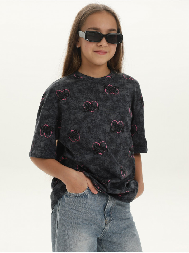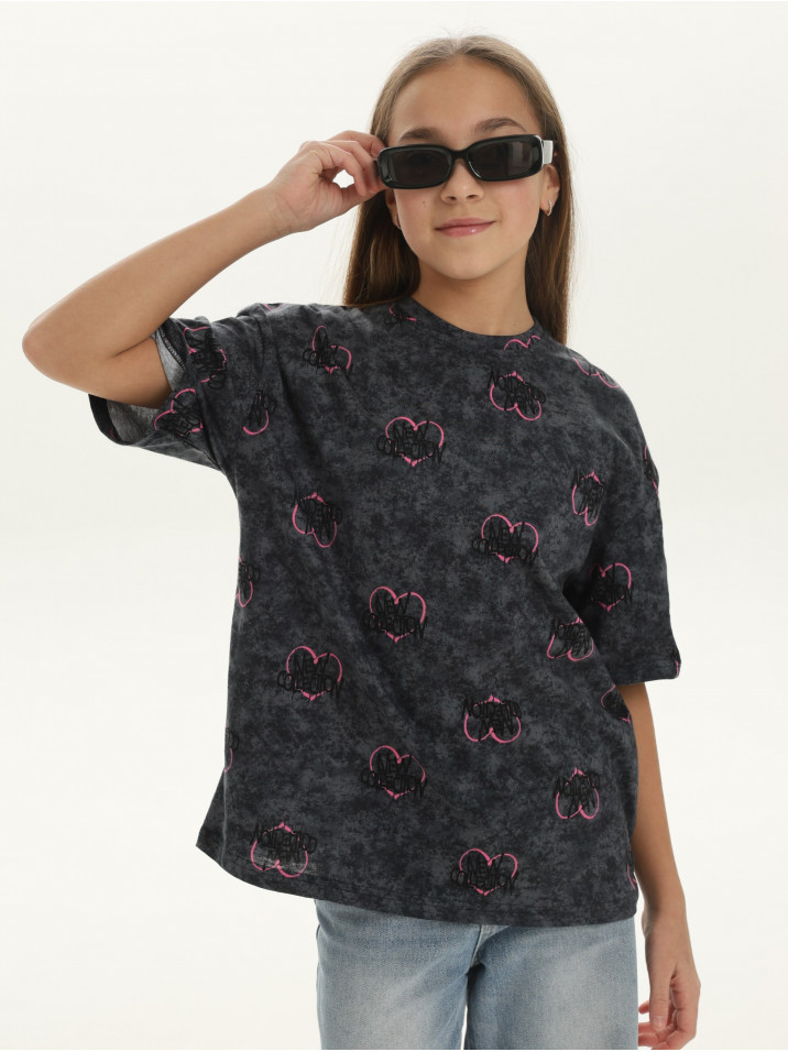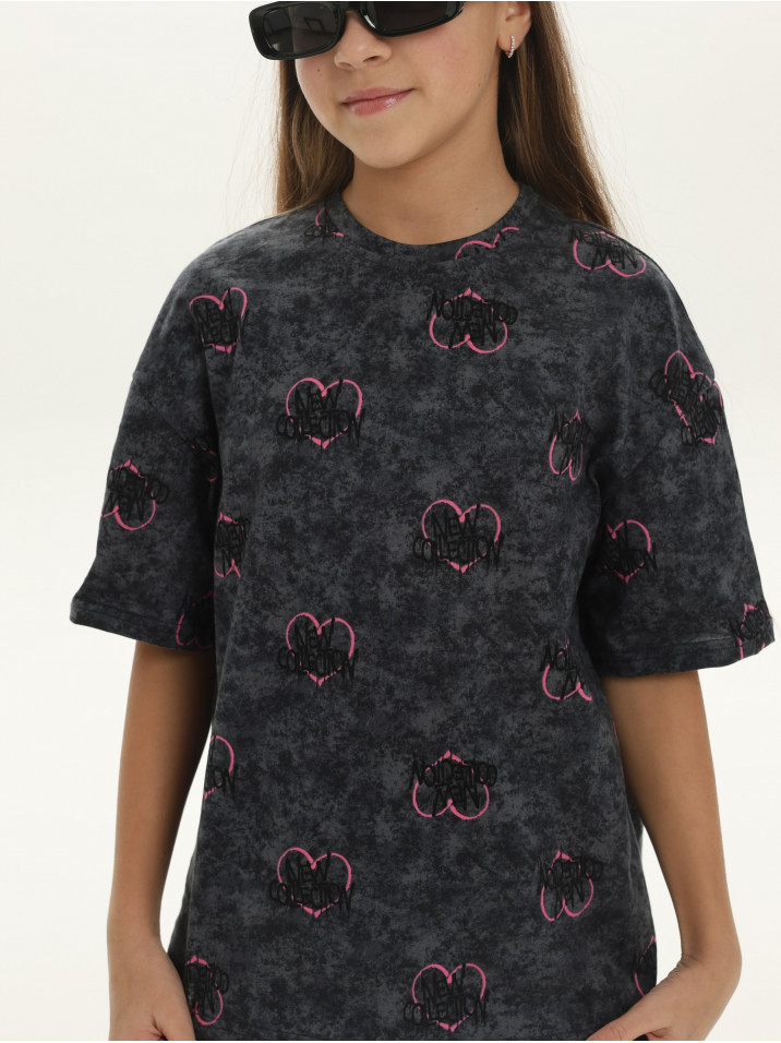 Футболка "Принт" Графит ДевочкаФутболка "Принт" Графит ДевочкаФутболка "Принт" Графит Девочка