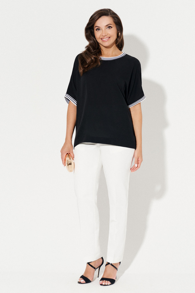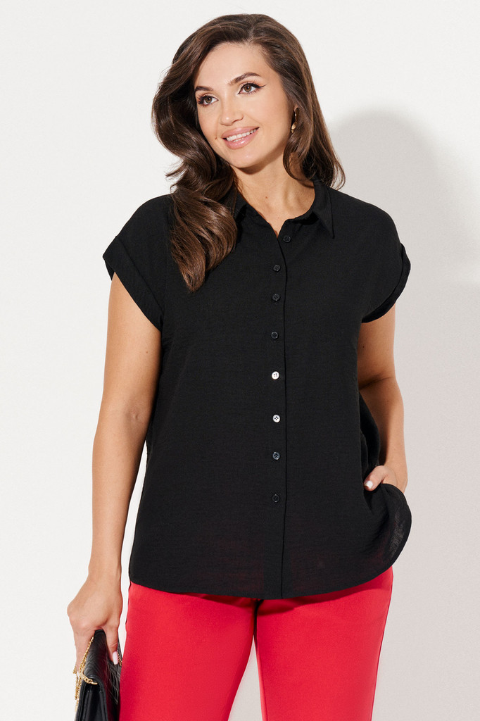 Описание Блузка женская — стильный и модный элемент гардероба, который идеально подойдет как для повседневного ношения, так и для создания нарядного образа. Элегантная рубашка с длинным рукавом выполн... Показать описаниеена из качественной поливискозной ткани с добавлением хлопка, что делает ее комфортной и приятной к телу. Черный цвет придает модели особый шик, а аккуратная отстрочка и декоративные детали добавляют винтажный и ретро-акцент, подчеркивая женственность и элегантность. Благодаря свободному крою и продуманному дизайну, блузка отлично садится на любую фигуру, подчеркивая достоинства силуэта. Передняя часть украшена клапанами с декоративными пуговицами, создавая эффект накладных карманов, что делает модель более стильной и популярной. Спинка дополнена отрезной кокеткой и изящными складками, обеспечивающими свободу движения. Блузка легко комбинируется с различными элементами гардероба, позволяя создавать модные и красивые образы. Она станет отличным решением как для офисного делового стиля, так и для расслабленного повседневного лука. Благодаря универсальности, модель можно носить весной и летом, используя как часть многослойного образа в прохладную погоду. Манжеты рукавов обработаны декоративной отстрочкой, подчеркивая внимание к деталям. Супатная застежка с обметанными петлями и пуговицами делает блузку еще более утонченной. Разрезы в боковых швах добавляют легкость и комфорт в движении. Этот брендовый элемент гардероба станет ключевой вещью в коллекции любой женщины, следящей за трендами и ценящей комфорт. Подходит для женщин любого возраста, кто хочет выглядеть элегантно, женственно и уверенно в любой ситуации. Параметры Рост: 164 44 Платье: Длина изделия - 73см, Длина рукава - 52см, Ширина плеча - 17см, Ширина по груди - 58см, Ширина по низу - 59см, Ширина рукава - 20.5см; 46 Платье: Длина изделия - 73см, Длина рукава - 52см, Ширина плеча - 17.2см, Ширина по груди - 60см, Ширина по низу - 61см, Ширина рукава - 21.3см; 48 Платье: Длина изделия - 73см, Длина рукава - 52см, Ширина плеча - 17.4см, Ширина по груди - 62см, Ширина по низу - 63см, Ширина рукава - 22.1см; 50 Платье: Длина изделия - 73см, Длина рукава - 52см, Ширина плеча - 17.6см, Ширина по груди - 64см, Ширина по низу - 65см, Ширина рукава - 22.9см; 52 Платье: Длина изделия - 73см, Длина рукава - 52см, Ширина плеча - 17.8см, Ширина по груди - 66см, Ширина по низу - 67см, Ширина рукава - 23.7см; 54 Платье: Длина изделия - 74см, Длина рукава - 52см, Ширина плеча - 18см, Ширина по груди - 68см, Ширина по низу - 69см, Ширина рукава - 24.5см; 56 Платье: Длина изделия - 74см, Длина рукава - 52см, Ширина плеча - 18.2см, Ширина по груди - 70см, Ширина по низу - 71см, Ширина рукава - 25.3см; Состав и уход Состав: Хлопок/cotton 55%; вискоза/viscose 45%. Уход: * Стирка при температуре воды до 30°C * Не отбеливать * Гладить при температуре утюга до 110°C * Вертикальная сушка * Барабанная сушка запрещена * Профессиональная сухая чистка в тетрахлорэтилене и во всех растворителях, внесенных в список для символа F.