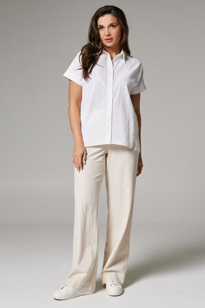 Описание Блузка женская из хлопчатобумажной ткани прямого силуэта для повседневной носки. В блузке имеется центральная бортовая застежка на шесть обметанных петель и шесть пуговиц. Перед имеет дизайне... Показать описаниерскую вышивку в виде очаровательных листиков. В боковых швах имеются небольшие разрезы. Горловина обработана рубашечным воротником с отрезной стойкой. Блузка с цельнокроеным коротким рукавом. Очень легкая и воздушная блузка подарит вашему телу комфорт, а также будет отлично смотреться на вашей фигуре. Параметры Рост: 164 48 Блузка: Длина изделия - 63см, Обхват шеи - 44.5см, Ширина плеча - 28.5см, Ширина по груди - 56см, Ширина по низу - 56см, Ширина рукава под проймой - 20см; 50 Блузка: Длина изделия - 63см, Обхват шеи - 45см, Ширина плеча - 29см, Ширина по груди - 58см, Ширина по низу - 58см, Ширина рукава под проймой - 20.5см; 52 Блузка: Длина изделия - 64см, Обхват шеи - 45.5см, Ширина плеча - 29.5см, Ширина по груди - 60см, Ширина по низу - 60см, Ширина рукава под проймой - 21см; 54 Блузка: Длина изделия - 64см, Обхват шеи - 46см, Ширина плеча - 30см, Ширина по груди - 62см, Ширина по низу - 62см, Ширина рукава под проймой - 21.5см; 56 Блузка: Длина изделия - 65см, Обхват шеи - 46.5см, Ширина плеча - 30.5см, Ширина по груди - 64см, Ширина по низу - 64см, Ширина рукава под проймой - 22см; 58 Блузка: Длина изделия - 65см, Обхват шеи - 47см, Ширина плеча - 31см, Ширина по груди - 66см, Ширина по низу - 66см, Ширина рукава под проймой - 22.5см; Состав и уход Состав: Хлопок 100%. Уход: * Стирка при температуре воды до 30°C * Не отбеливать * Гладить при температуре утюга до 110°C * Вертикальная сушка * Барабанная сушка запрещена * Профессиональная сухая чистка в тетрахлорэтилене и во всех растворителях, внесенных в список для символа F.
