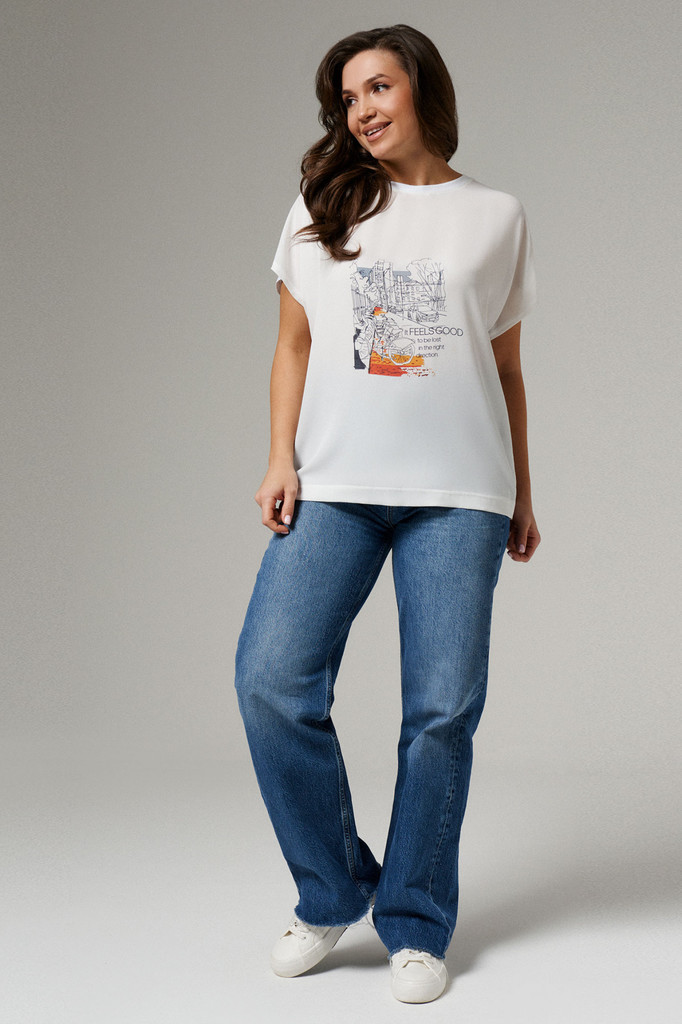 Описание Женская блузка с принтом легко станет акцентной деталью созданного вами летнего образа. В данной блузке перед из лёгкой струящейся ткани, а спинка из приятного на ощупь хлопкового трикотажа, ... Показать описаниемаксимально пропускающего воздух к телу и обеспечивающего комфортные ощущения. Летняя блузка женская прямого кроя спереди украшена по центру дизайнерской печатью. Вырез горловины – круглый. обработан бейкой из трикотажа. Линия плеча слегка спущена. Без рукавов. Она превосходно комбинируется с брюками, джинсами, юбками, шортами. Предлагаем вам купить красивую женскую блузку по приемлемой стоимости. Параметры Рост: 164 42 Блузка: Длина изделия - 59см, Ширина плеча - 23.5см, Ширина по груди - 50см, Ширина по низу - 51см, Ширина рукава под проймой - 21.5см; 44 Блузка: Длина изделия - 59см, Ширина плеча - 24см, Ширина по груди - 52см, Ширина по низу - 53см, Ширина рукава под проймой - 22см; 46 Блузка: Длина изделия - 60см, Ширина плеча - 24.5см, Ширина по груди - 54см, Ширина по низу - 55см, Ширина рукава под проймой - 22.5см; 48 Блузка: Длина изделия - 60см, Ширина плеча - 25см, Ширина по груди - 56см, Ширина по низу - 57см, Ширина рукава под проймой - 23см; 50 Блузка: Длина изделия - 61см, Ширина плеча - 25.5см, Ширина по груди - 58см, Ширина по низу - 59см, Ширина рукава под проймой - 23.5см; 52 Блузка: Длина изделия - 61см, Ширина плеча - 26см, Ширина по груди - 60см, Ширина по низу - 61см, Ширина рукава под проймой - 24см; 54 Блузка: Длина изделия - 62см, Ширина плеча - 26.5см, Ширина по груди - 62см, Ширина по низу - 63см, Ширина рукава под проймой - 24.5см; 56 Блузка: Длина изделия - 62см, Ширина плеча - 27см, Ширина по груди - 64см, Ширина по низу - 65см, Ширина рукава под проймой - 25см; Состав и уход Состав: Полиэстер/polyester 50%; хлопок/cotton 45%; эластан/elastane 5%. Уход: * Стирка при температуре воды до 30°C * Не отбеливать * Гладить при температуре утюга до 110°C * Вертикальная сушка * Барабанная сушка запрещена * Профессиональная сухая чистка в тетрахлорэтилене и во всех растворителях, внесенных в список для символа F.