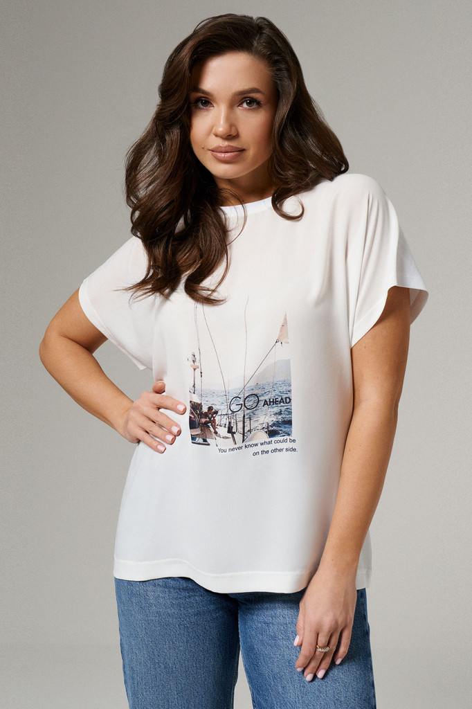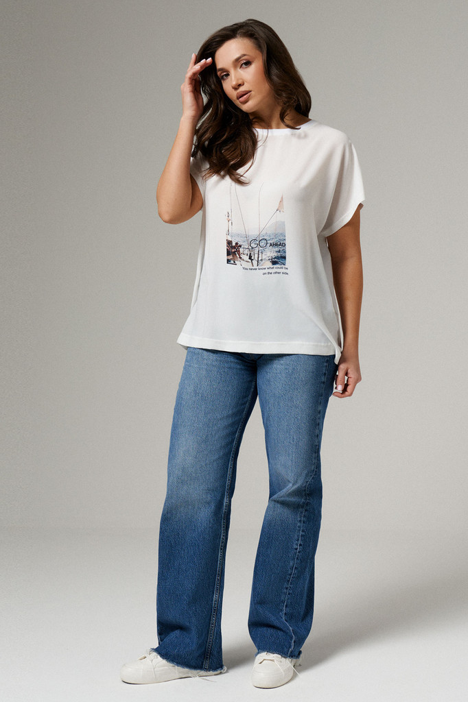 Описание "Принтованная рубашка-блузка женская пригодится вам для повседневной носки. Легкая и воздухопроницаемая ткань удобна и комфортна в носке. Рубашка-блузка женская белая отталкивает лучи палящег... Показать описаниео солнца, благодаря чему летом вам не будет в ней жарко. Блузка женская с длинным рукавом, отложным воротником, потайными пуговицами под планкой и разрезами в боковом шве отлично садится по фигуре. Сзади спинка удлиненная, с закругленным низом, украшена черно-белым принтом. Также есть надпись на нагрудном кармане. Ультралегкая блузка женская содержит в себе хлопок, поэтому требует бережную стирку при 30о. Ткань буквально «дышит» во время носки и быстро впитывает влагу. Это must have на все случаи жизни! Блузка в офис, блузка на свидание и прогулку по городу - надевайте ее куда угодно. Длинный рукав на притачной манжете с декоративной патой позволяет создавать разные образы. Женская блузка с длинным рукавом - универсальная вещь для весенне-летнего гардероба." Параметры Рост: 164 42 Блузка: Длина рукава - 57см, Длина спинки - 78см, Обхват шеи - 38.4см, Ширина плеча - 16.6см, Ширина по бедрам - 52см, Ширина по груди - 50см, Ширина рукава - 20.4см; 44 Блузка: Длина рукава - 57см, Длина спинки - 78см, Обхват шеи - 39см, Ширина плеча - 17см, Ширина по бедрам - 54см, Ширина по груди - 52см, Ширина рукава - 21см; 46 Блузка: Длина рукава - 57см, Длина спинки - 78см, Обхват шеи - 39.6см, Ширина плеча - 17.4см, Ширина по бедрам - 56см, Ширина по груди - 54см, Ширина рукава - 21.6см; 48 Блузка: Длина рукава - 57см, Длина спинки - 78см, Обхват шеи - 40.2см, Ширина плеча - 17.8см, Ширина по бедрам - 58см, Ширина по груди - 56см, Ширина рукава - 22.2см; 50 Блузка: Длина рукава - 57см, Длина спинки - 78см, Обхват шеи - 40.8см, Ширина плеча - 18.2см, Ширина по бедрам - 60см, Ширина по груди - 58см, Ширина рукава - 22.8см; Состав и уход Состав: Хлопок 100%. Уход: * Стирка при температуре воды до 30°C * Не отбеливать * Гладить при температуре утюга до 110°C * Вертикальная сушка * Барабанная сушка запрещена * Профессиональная сухая чистка в тетрахлорэтилене и во всех растворителях, внесенных в список для символа F.
