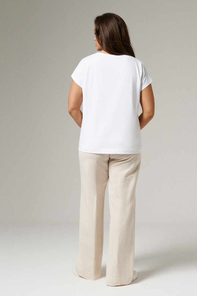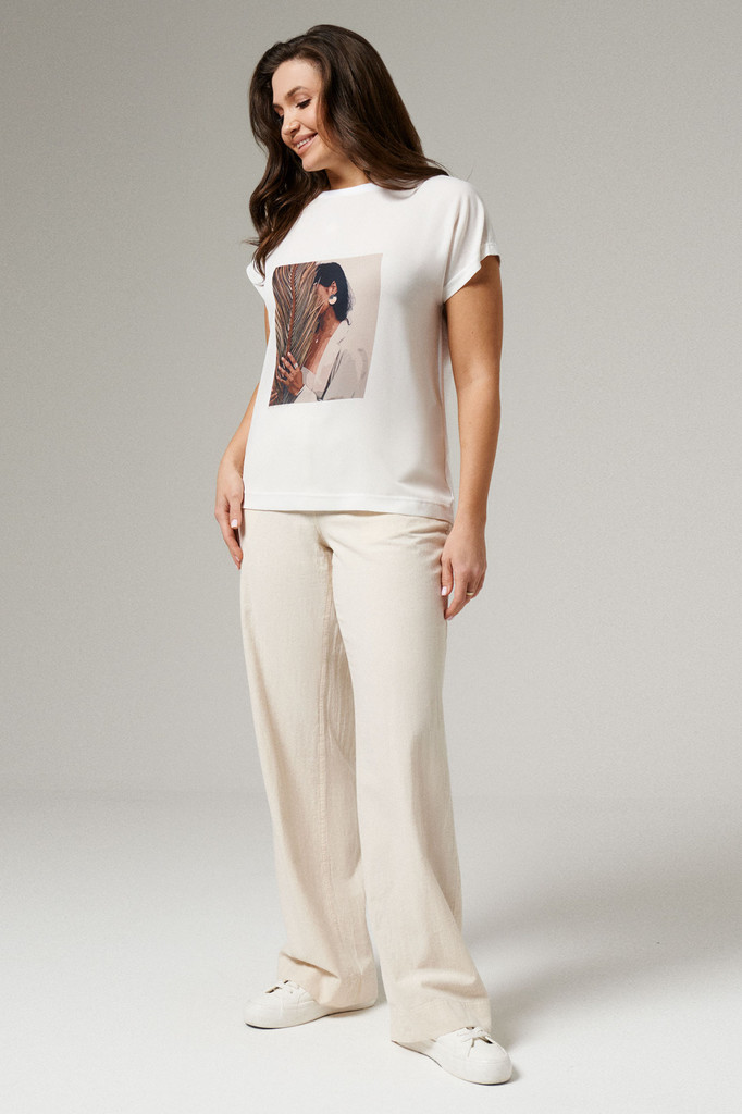Описание Женская блузка летняя из натурального льна и вискозы – идеальный выбор для теплых дней. Легкая, дышащая ткань обеспечивает комфорт, а оригинальная вышивка в тон придает изделию нарядный и сти... Показать описаниельный вид. Эта красивая блузка повседневная прямого силуэта. Линия плеча спущенная. Перед имеет дизайнерскую вышивку. Блузка с разрезами в боковых швах. Низ изделия длиннее чем спинка. Блузка с укороченным кроем и коротким цельнокроеным рукавом, низ рукава обработан отлетной манжетой, подойдёт для женщин любого возраста и комплекции, включая большой размер. Манжеты с отворотом подчеркивают изящество рук, а круглая горловина делает образ более мягким и женственным. Блузка гармонично впишется как в офисный гардероб, так и в повседневный стиль. Она станет отличной базовой вещью, позволяя создавать модные луки. Благодаря универсальному фасону, этот брендовый элемент одежды подойдет для деловой встречи, прогулки или даже праздничного мероприятия. Ее легко комбинировать с аксессуарами, создавая как винтажные, так и современные образы. Летний вариант наряда идеально сочетается с трендовыми элементами современной моды. Натуральный лен, известный своими гипоаллергенными и воздухопроницаемыми свойствами, делает блузу комфортной даже в жаркую погоду. Такая стильная модель подчеркнет вкус женщины, предпочитающей элегантность и практичность. Блузка станет незаменимой частью гардероба для тех, кто ценит модные решения в одежде. Вдохновленная ретро-мотивами, она передает дух белорусского текстиля, сочетая винтажный стиль с актуальными тенденциями. Прекрасно подойдет для офиса, работы или отдыха. Такой наряд подойдет для женщин, предпочитающих стильную, нарядную и практичную одежду. Вышивка придает блузке изысканность, а свободный крой позволяет чувствовать себя комфортно весь день. Весенне-летний вариант универсален и актуален для разных случаев – от праздника до повседневного выхода. Блузка подчеркнет природную красоту и добавит в гардероб легкости и свежести. Параметры Рост: 164 44 Блузка: Длина изделия - 60см, Длина рукава - 36см, Ширина по груди - 54см, Ширина по низу - 56см, Ширина рукава под проймой - 19см; 46 Блузка: Длина изделия - 60см, Длина рукава - 36см, Ширина по груди - 56см, Ширина по низу - 58см, Ширина рукава под проймой - 19.5см; 48 Блузка: Длина изделия - 60см, Длина рукава - 36см, Ширина по груди - 58см, Ширина по низу - 60см, Ширина рукава под проймой - 20см; 50 Блузка: Длина изделия - 61см, Длина рукава - 36см, Ширина по груди - 60см, Ширина по низу - 62см, Ширина рукава под проймой - 20.5см; 52 Блузка: Длина изделия - 62см, Длина рукава - 36см, Ширина по груди - 62см, Ширина по низу - 64см, Ширина рукава под проймой - 21см; 54 Блузка: Длина изделия - 63см, Длина рукава - 36см, Ширина по груди - 64см, Ширина по низу - 66см, Ширина рукава под проймой - 21.5см; Состав и уход Состав: Лён/linen 55%; вискоза/viscose 45%. Уход: * Стирка при температуре воды до 30°C * Не отбеливать * Гладить при температуре утюга до 110°C * Вертикальная сушка * Барабанная сушка запрещена * Профессиональная сухая чистка в тетрахлорэтилене и во всех растворителях, внесенных в список для символа F.