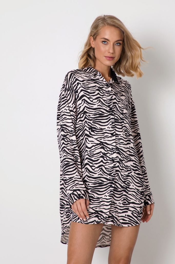 Очаровательная и вдохновляющая ночная рубашка Aisha из очень мягкой блестящей вискозы со смелым животным принтом. Ночная рубашка на пуговицах с воротником рубашечного типа, рукавами полной длины с кан... Показать описаниетом на манжетах и нагрудным карманом. Задняя часть ночной рубашки имеет удлиненную округлую форму для удобства движений.
