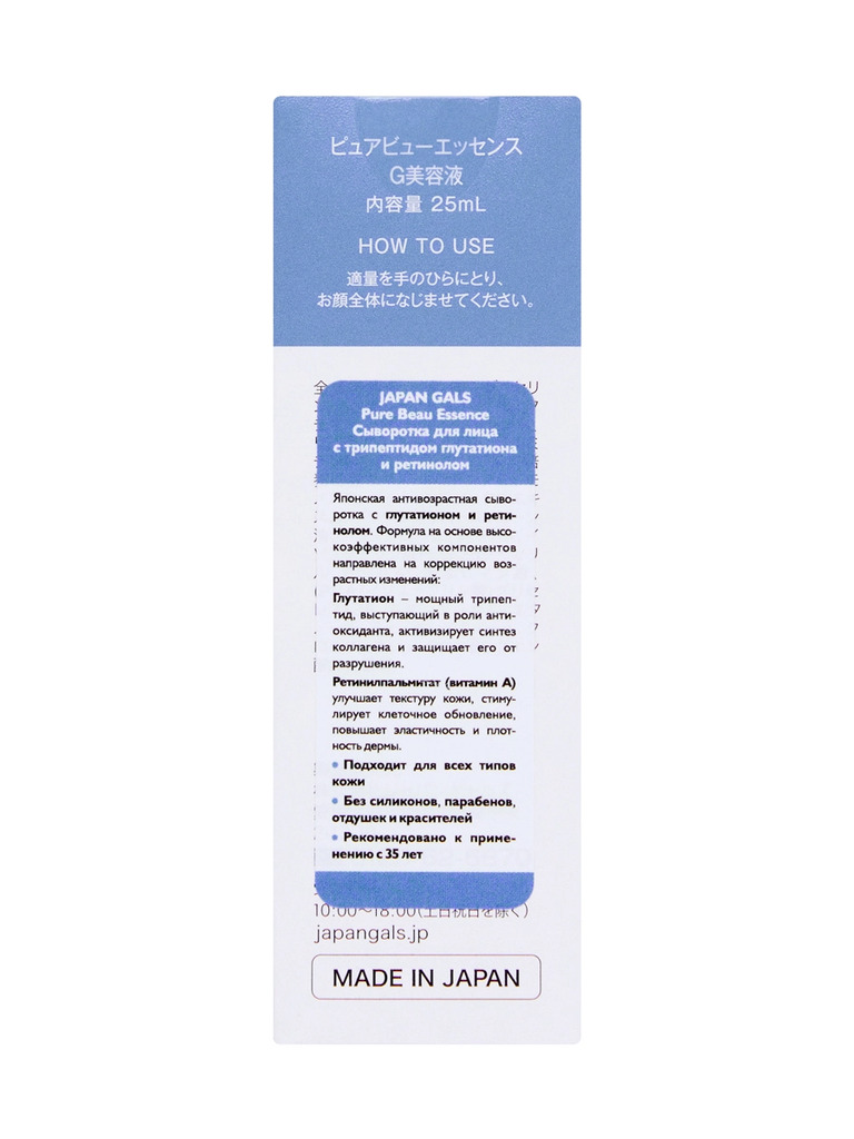 JAPAN GALS Pure Beau Essence Сыворотка для лица с трипептидом глутатиона и ретинолом, 25 млВопросы по товару