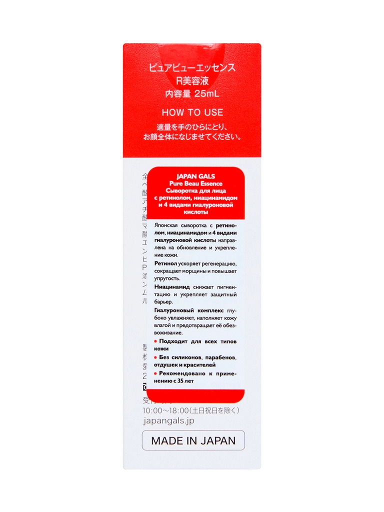 JAPAN GALS Pure BeauEssenceСыворотка для лица с ретинолом,ниацинамидом и 4 видами гиалур.кислоты25млВопросы по товару