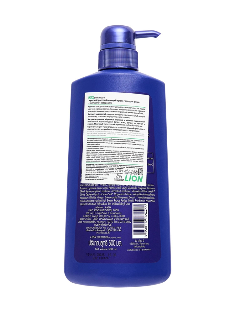 *LION Shokubutsu мужской расслабляющий крем-гель для душа с экстрактом водорослей 450 млВопросы по товару