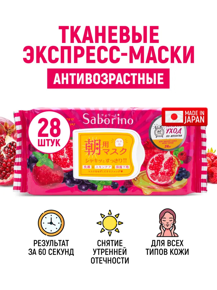 *SABORINO Экспресс-маска для лица тканевая антивозрастная "Успей за 60 секунд", 30 штВопросы по товару