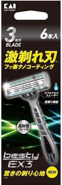 KAI Бритва безопасная Besty EX3 NEW двигающейся головкой 3 лезвиями титановое покрытие увлажняющей полоской двойного Алоэ Вера, 6 шт.Вопросы по товару