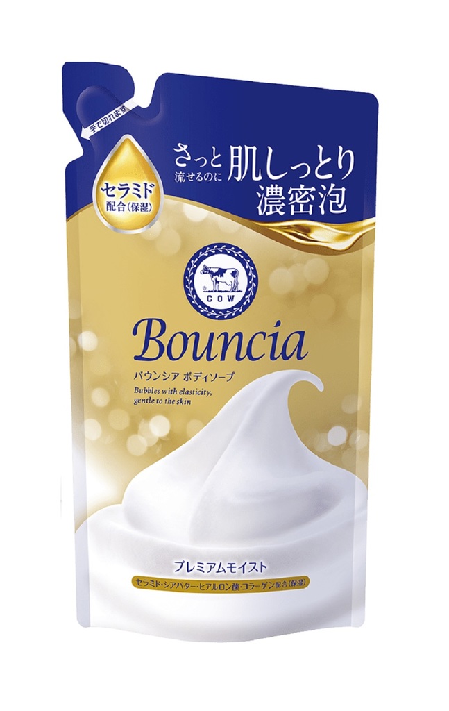 COW Гель для душа BOUNCIA PREMIUM Сливочный с молочными протеинами и шелком, цветочный аромат, 340 мл. сменная упаковка