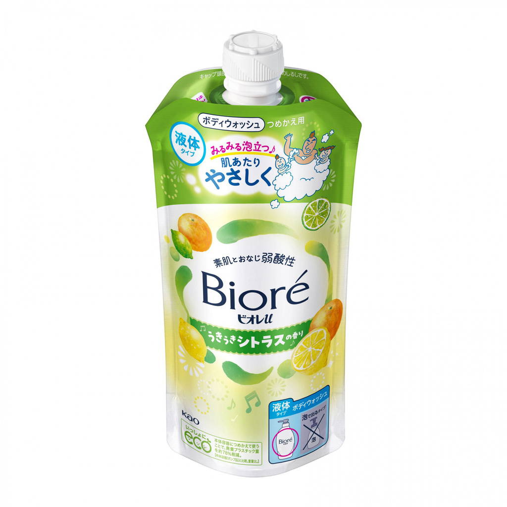 KAO Гель для душа BIORE U Бодрящий цитрус с маслом апельсина и ароматом цитрусовых фруктов, 320 мл. сменная упаковка