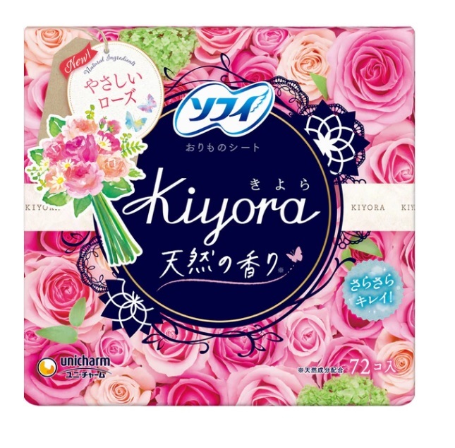UNICHARM Ежедневные прокладки Sofy KIYORA Floral relax для чувствительной кожи с поглотителем запаха, нежный цветочный аромат, Размер: длина 14 см * ширина 5,5 см, 72 штВопросы по товару