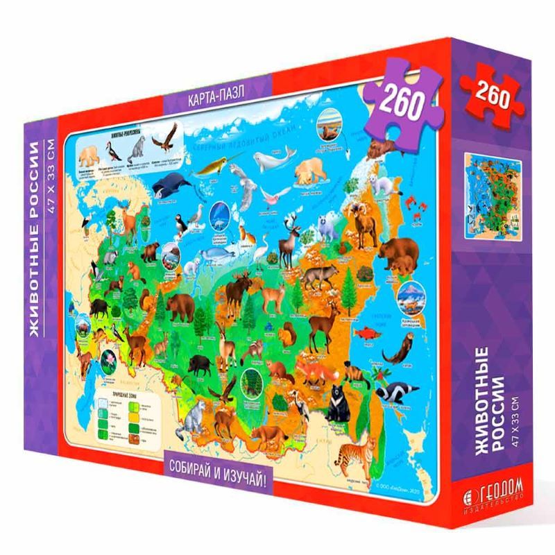 В процессе интересной игры карта-пазл «Животные России» позволяет легко изучить и познать окружающий мир растений и животных нашей родины! Ваш ребенок в процессе игры с большим интересом изучит флору ... Показать описаниеи фауну в различных частях России, а также обитателей океанов и морей. Играя, ребенок развивает воображение, пространственное мышление, внимание и память! Познавайте окружающий мир вместе с ребенком, собирая данную карту-пазл! Рекомендованный возраст: 6+. Формат: 33х47 см. Комплектация: 260 деталей.