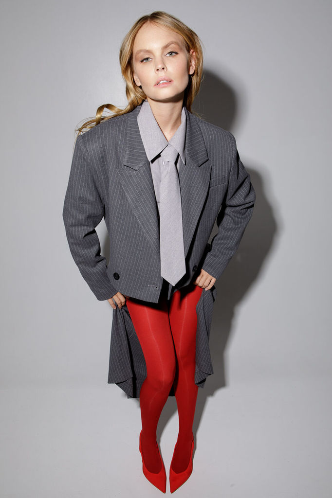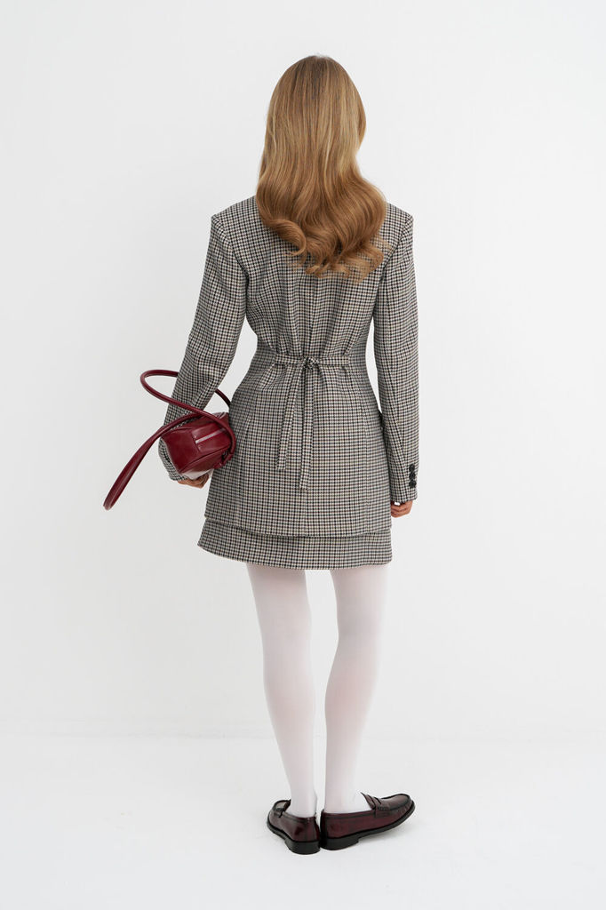 Состав: Жакет- Вискоза-68%; ПЭ-30%; Эластан-2%; Подкладка- Вискоза-55%; ПЭ-45%; Сезон: Осень-Зима Рост: 164 Страна бренда: Беларусь Состав: Жакет: Вискоза-68%; ПЭ-30%; Эластан-2%; Подкладка: Вискоза-5... Показать описание5%; ПЭ-45%; Удлиненный приталенный жакет из текстильной ткани с рисунком «гусиная лапка». Детали: пиджачный воротник, перед с функциональными карманами, застежка на петли и пуговицы, рукава втачные двухшовные, спинка с рельефами и регулировкой-завязками по талии. Жакет на подкладке. Длина по спинке около 75 см в размерах 40-46 и около 78 см в размерах 48-52, длина рукава около 61 см.