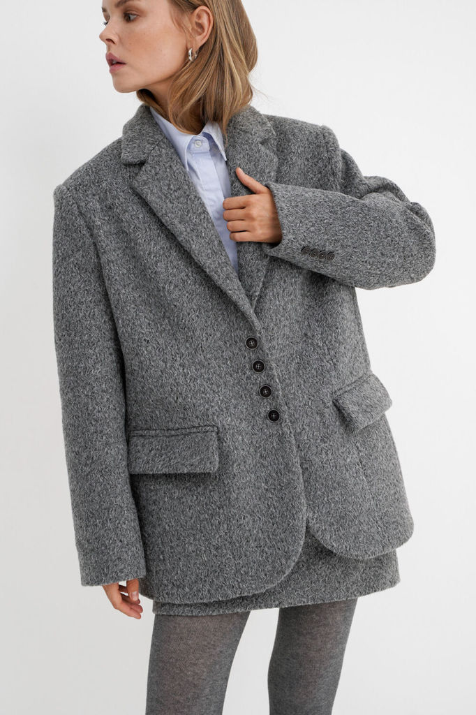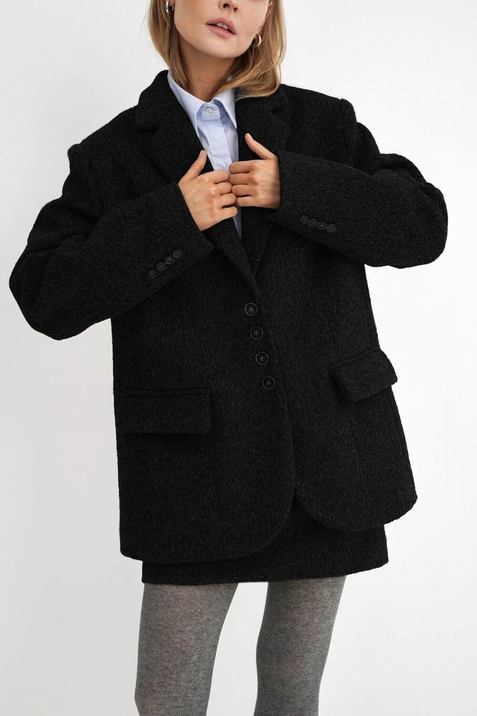 Состав: Жакет- Вискоза-12%; Шерсть-30%; ПАН-58%; Подкладка- Вискоза-55%; ПЭ-45%; Сезон: Осень-Зима Рост: 164 Страна бренда: Беларусь Состав: Жакет: Вискоза-12%; Шерсть-30%; ПАН-58%; Подкладка: Вискоза... Показать описание-55%; ПЭ-45%; Оверсайз жакет из фактурной пальтовой ткани. Детали: жакет прямого силуэта, расширенная линия плеч, пиджачный воротник, перед с прорезными функциональными карманами, однобортная застежка на петли и пуговицы, спинка со средним швом и шлицей, рукава втачные двухшовные, жакет на подкладке. Длина по спинке около 72 см в размерах 40-46 и около 75 см в размерах 48-52, длина рукавов около 62 см.