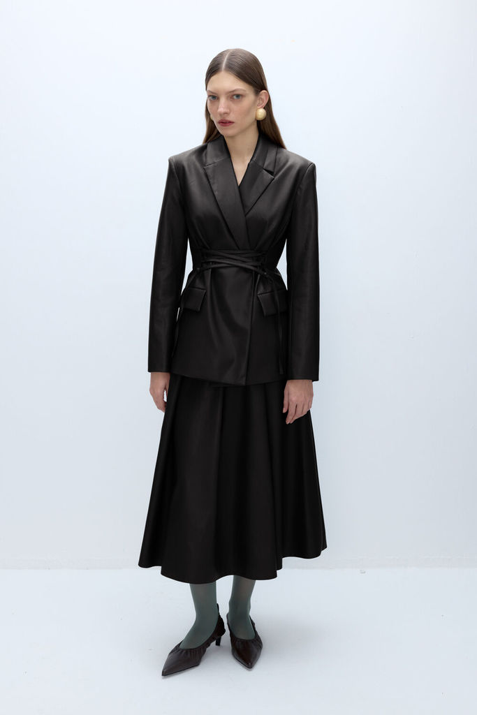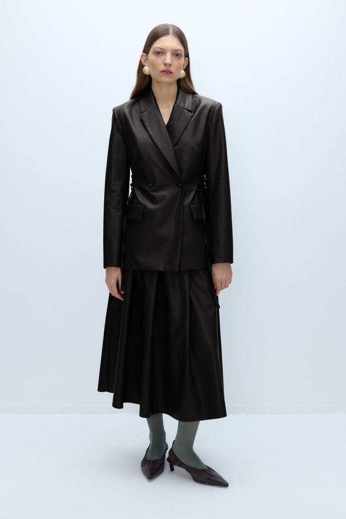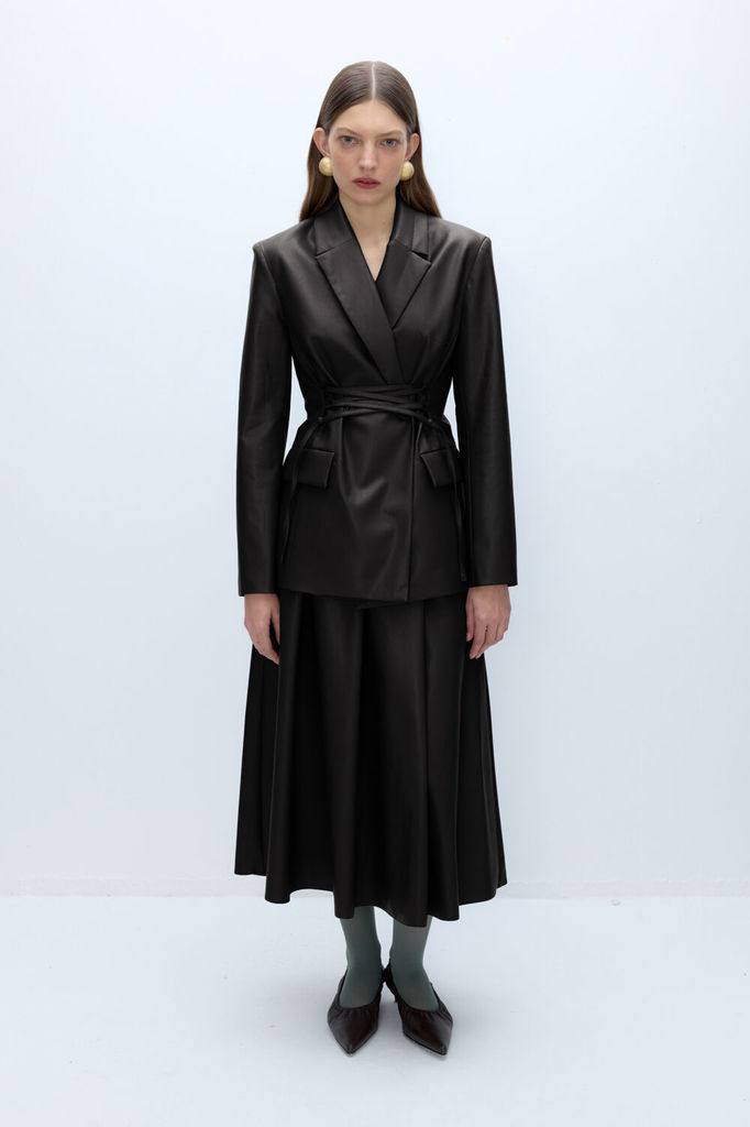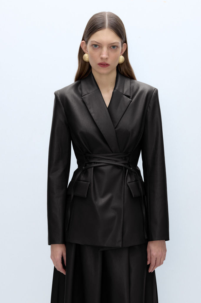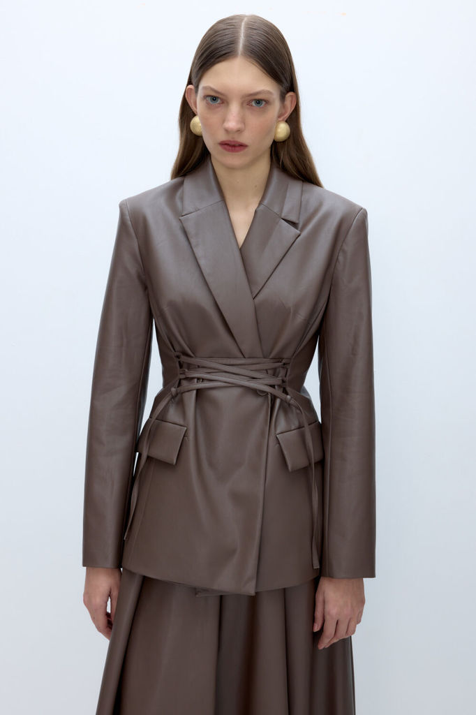 Состав: Жакет- ПЭ-70%; Хлопок-30%; Подкладка- Вискоза-55%; ПЭ-45%; Сезон: Осень-Зима Рост: 164 Страна бренда: Беларусь Состав: Жакет: ПЭ-70%; Хлопок-30%; Подкладка: Вискоза-55%; ПЭ-45%; Жакет со шнуро... Показать описаниевкой из экокожи. Детали: жакет полуприлегающего силуэта, расширенные плечи, рельефы, пиджачный воротник, застежка на две петли и пуговицы, функциональные карманы, жакет на подкладке. Жакет также можно зашнуровать по бокам. Длина по спинке около 69 в размерах 40-46 и около 72 см в размерах 48-52, длина рукавов около 61 см.