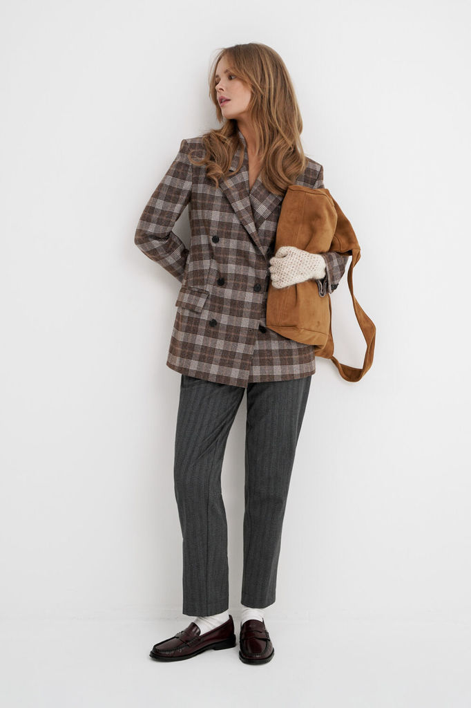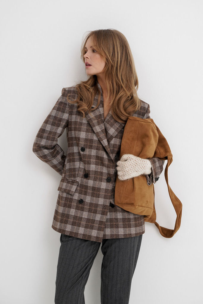 Состав: Жакет- Вискоза-56%; ПЭ-42%; Эластан-2%; Подкладка- Вискоза-55%; ПЭ-45%; Сезон: Осень-Зима Рост: 164 Страна бренда: Беларусь Состав: Жакет: Вискоза-56%; ПЭ-42%; Эластан-2%; Подкладка: Вискоза-5... Показать описание5%; ПЭ-45%; Свободный двубортный жакет из текстильной ткани в клетку. Детали: жакет свободного покроя, полуприлегающий силуэт, двубортная застежка на петли и пуговицы, пиджачный воротник, функциональные карманы, жакет на подкладке. Длина по спинке около 69 в размерах 40-46 и около 72 см в размерах 48-52, длина рукавов около 62 см