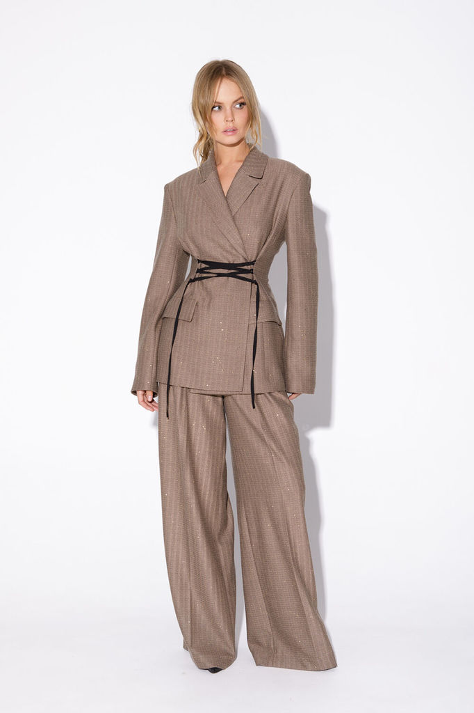 Состав: Жакет- Вискоза-51%; ПЭ-32%; Шерсть-17%; Подкладка- Вискоза-55%; ПЭ-45%; Сезон: Осень-Зима Рост: 164 Страна бренда: Беларусь Состав: Жакет: Вискоза-51%; ПЭ-32%; Шерсть-17%; Подкладка: Вискоза-5... Показать описание5%; ПЭ-45%; Жакет со шнуровкой из текстильной ткани в пайетки. Детали: жакет полуприлегающего силуэта, расширенные плечи, рельефы, пиджачный воротник, застежка на две петли и пуговицы, функциональные карманы, жакет на подкладке. Жакет также можно зашнуровать по бокам. Длина по спинке около 69 в размерах 40-46 и около 72 см в размерах 48-52, длина рукавов около 61 см
