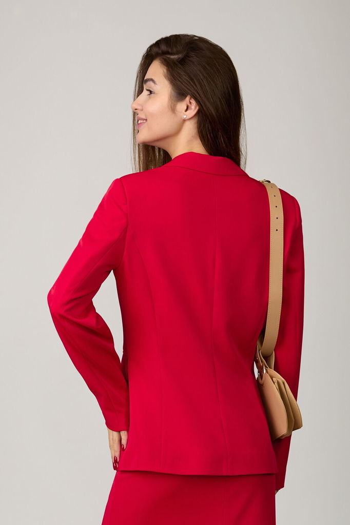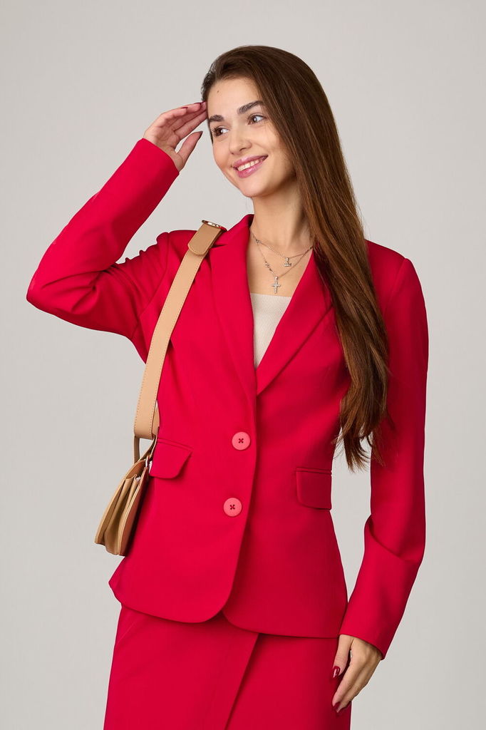 Состав: ПЭ-97%; Эластан-3%; Сезон: Осень-Зима Рост: 170 Страна бренда: Беларусь Состав: ПЭ-97%; Эластан-3%; Модель отшивается под заказ. Срок пошива от 3 недель. Комплект из костюмной ткани на подклад... Показать описаниеке, состоящий из жакета и юбки. Жакет приталенного силуэта. Верхняя часть переда с рельефами, вытачками. В левой части переда - прорезной карман в рамку. В правой нижней части переда отлетная деталь, застегивающаяся на пуговицу. Спинка с рельефами, отрезная по линии талии. Жакет застегивается на пуговицу и внутреннюю кнопку. Жакет декорирован цветными булавками. Юбка на подкладке, слегка зауженная к низу, без пояса. Верх юбки обработан обтачкой. В рельефе юбки разрез, обеспечивающий свободу движения и щель, декорированная булавкой. Застежка - молния в среднем шве юбки. Подходит на рост 164-170.