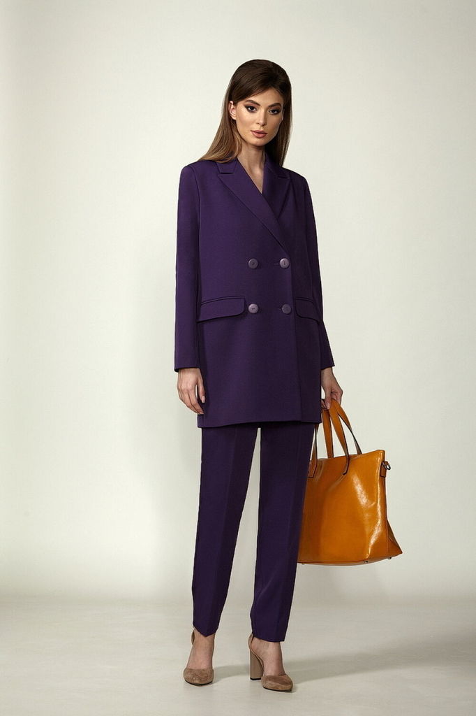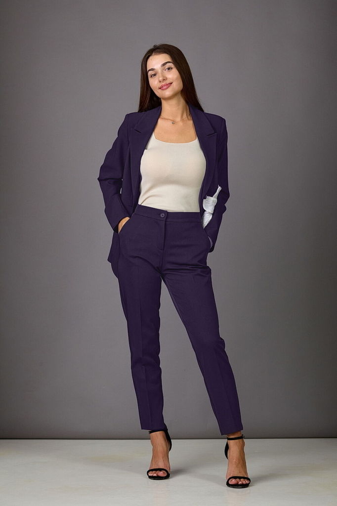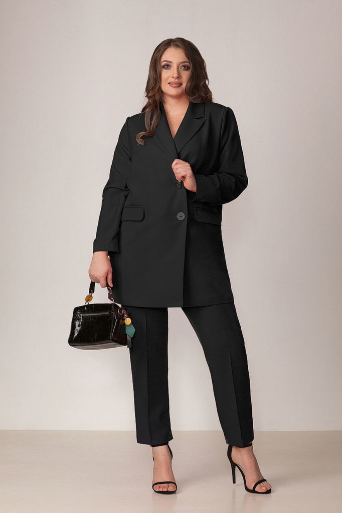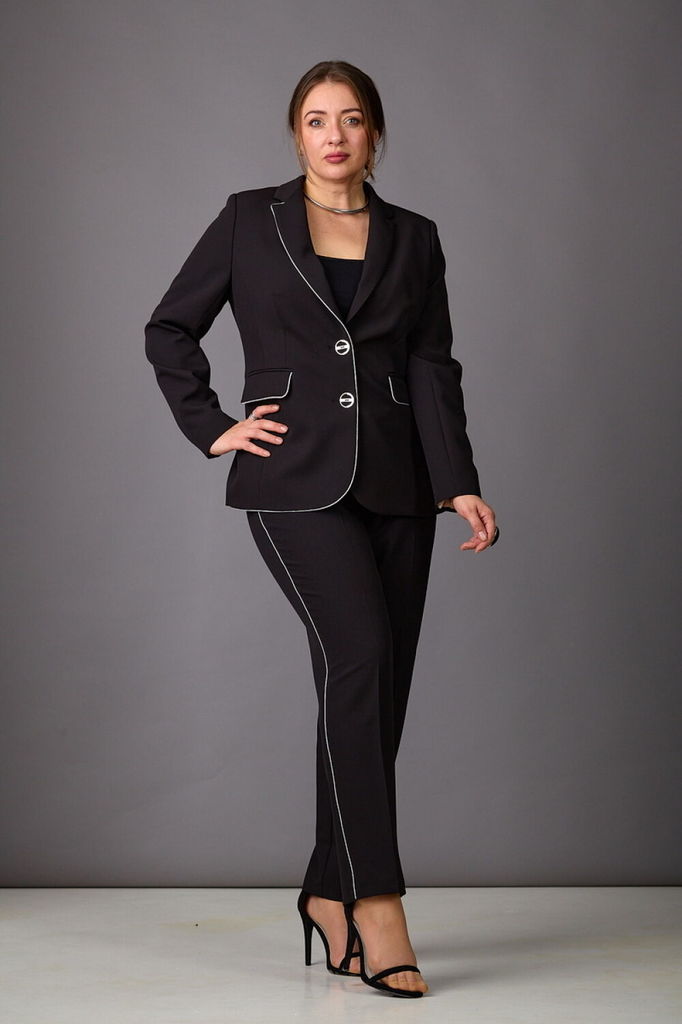 Состав: Костюм- ПЭ-97%; Эластан-3%; Подкладка- ПЭ-100%; Сезон: Осень-Зима Рост: 164 Страна бренда: Беларусь Состав: Костюм: ПЭ-97%; Эластан-3%; Подкладка: ПЭ-100%; Модель отшивается под заказ. Срок по... Показать описаниешива от 3 недель. Брючный комплект из костюмной ткани на подкладке. Двубортный жакет выполнен в стиле оверсайз. Воротник-с отложными лацканами пиджачного типа, рукава - двухшовные. По переду- прорезные карманы с клапанами. Жакет имеет два ряда пуговиц, застегивается на две основные пуговицы, одну потайную, остальные пуговицы несут декоративный характер. Брюки слегка заужены к низу, с двумя наклонными карманами и притачным поясом. Застегиваются на молнию по переду и одну пуговицу. Подходит на рост 164-170.