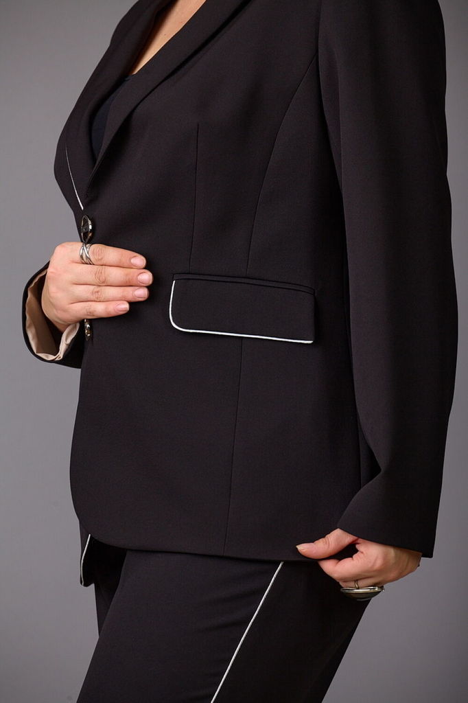 Состав: ПЭ-97%; Спандекс-3%; Сезон: Осень-Зима Рост: 164 Страна бренда: Беларусь Состав: ПЭ-97%; Спандекс-3%; Модель отшивается под заказ. Срок пошива от 3 недель. Жакет из костюмной ткани на подкладк... Показать описаниее. Жакет прямого силуэта с двубортной застежкой на 2 петли и пуговицы и одну потайную. По переду- прорезные карманы с клапанами. Воротник-с отложными лацканами пиджачного типа, двухшовные, длинные. Спинка-без швов. Подходит на рост 164-170. Жакет 44 46 48 50 52 54 Длина изделия, см 82 82 82 84 84 84 Длина рукава, см 62,5 62,5 62,5 62,5 62,5 62,5 Ширина по груди, см (полуобхват) 52 54 56 58 60 62 Ширина по бедрам (полуобхват), см 52 54 56 58 60 62 Ширина рукава вверху (полуобхват), см 17,5 18,5 19,5 20,5 21,5 22,5 Ширина рукава внизу (полуобхват), см 12 12,4 12,8 13,2 13,6 14
