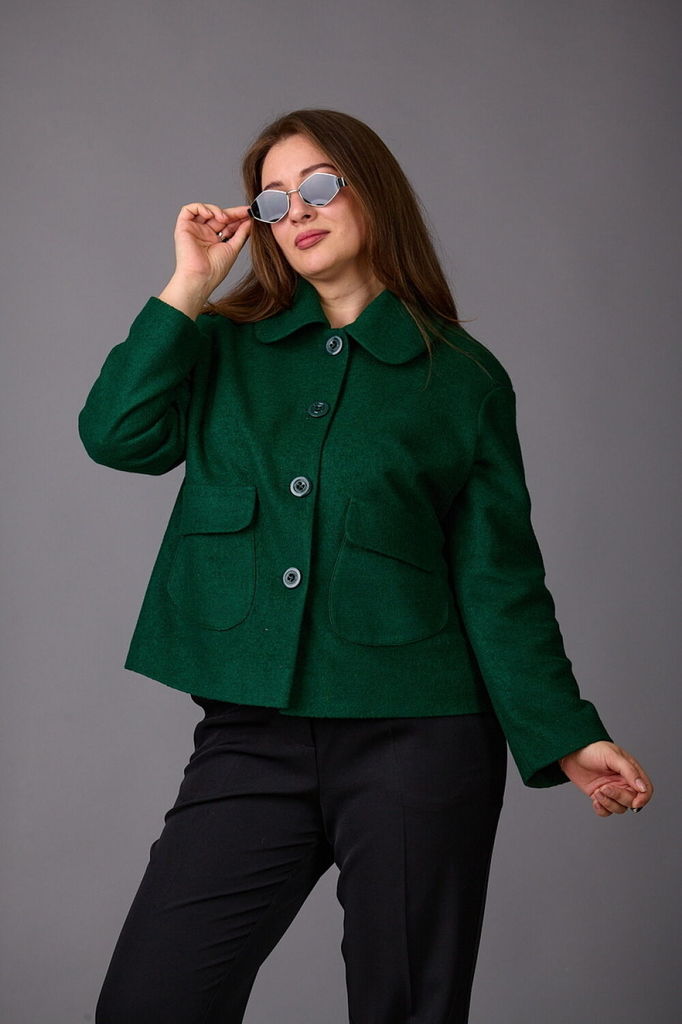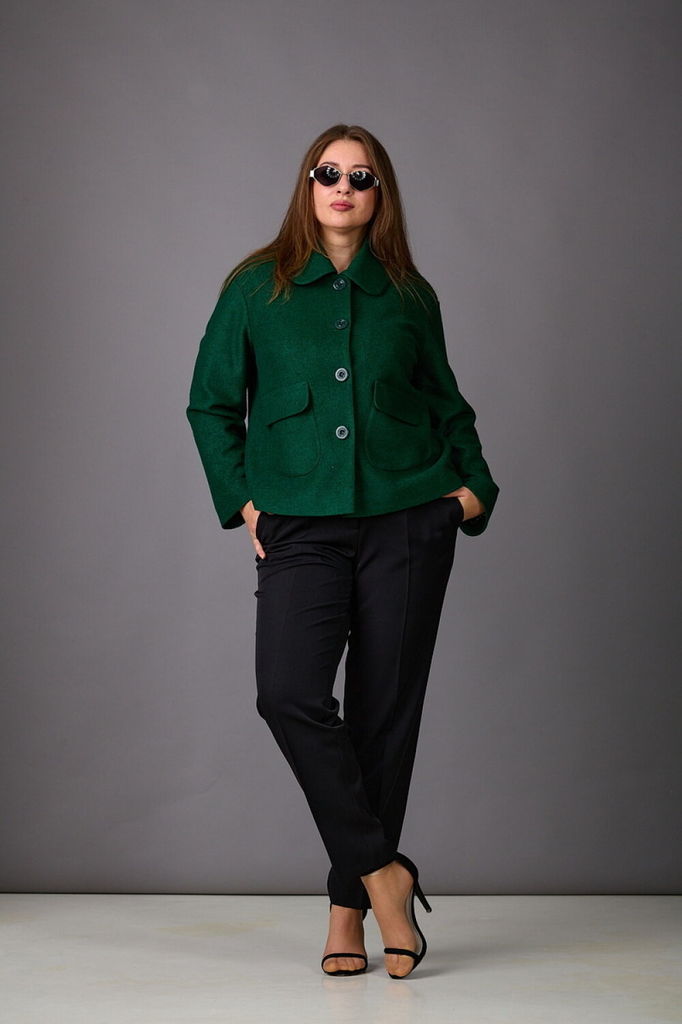 Состав: Вискоза-20%; ПЭ-30%; ПАН-50%; Сезон: Осень-Зима Рост: 164 Страна бренда: Беларусь Состав: Вискоза-20%; ПЭ-30%; ПАН-50%; Модель отшивается под заказ. Срок пошива от 3 недель. Жакет на подкладке... Показать описание из пальтовой ткани. Силуэт прямой, по переду нагрудные вытачки и накладные карманы с клапанами округлой формы. Пройма спущена, рукава узкие. Воротник с закругленными углами с притачной стойкой. Застегивается на 4 пуговицы.