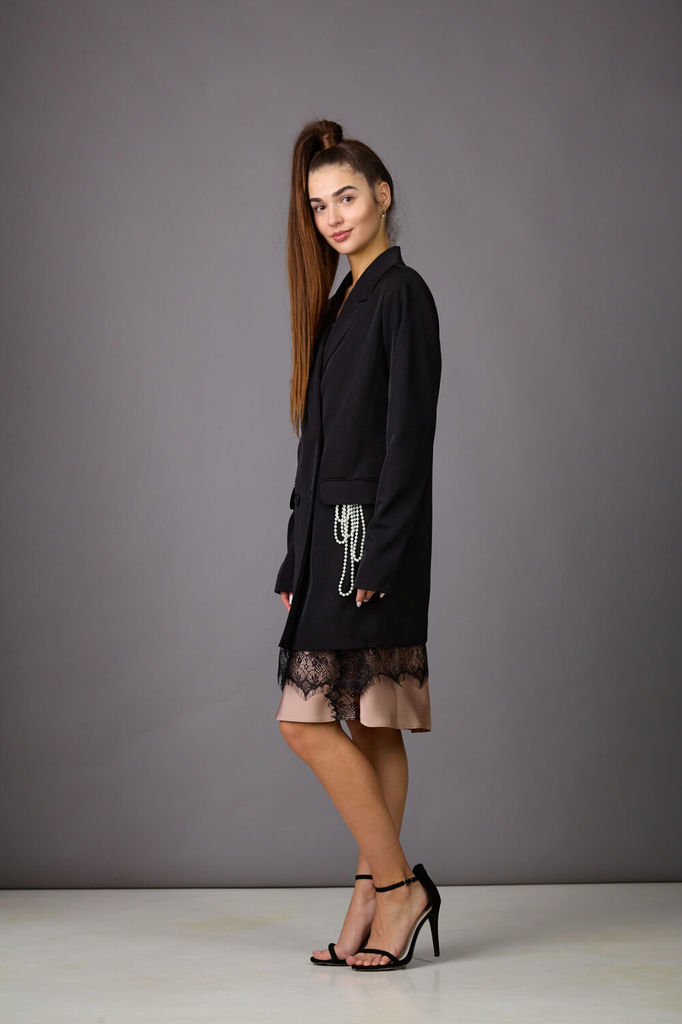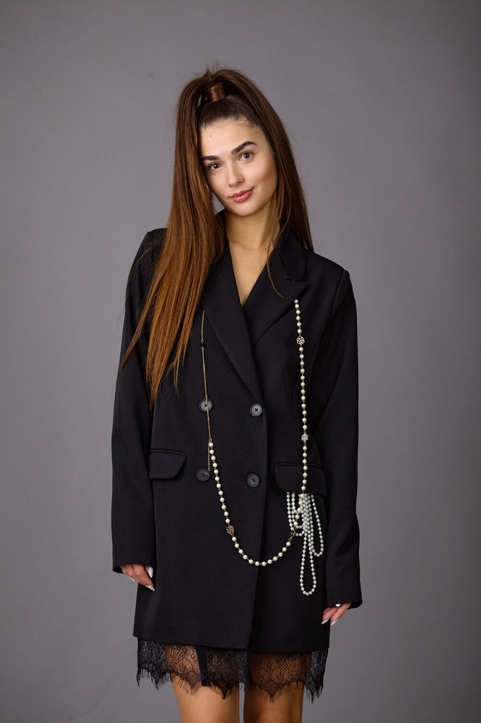 Состав: ПЭ-97%; Спандекс-3%; Сезон: Осень-Зима Рост: 164 Страна бренда: Беларусь Состав: ПЭ-97%; Спандекс-3%; Модель отшивается под заказ. Срок пошива от 3 недель. Представляем жакет женский из костюм... Показать описаниеной ткани на подкладке,который станет незаменимым спутником в вашей жизни. Лаконичный прямой силуэт жакета с двубортной застежкой прекрасно сочетается с нежным кружевом шантильи по низу. По переду- прорезные карманы с клапанами. В левом кармане брошь, имитирующая горсть жемчуга, выпадающего из кармана. Брошь сьемная, входит в комплект с жакетом. Воротник-с отложными лацканами пиджачного типа. Рукава двухшовные, длинные. Жакет можно носить, как самостоятельно, так и в сочетании с платьями- комбинациями, юбками, брюками. Длина жакета 44-48р - 82см +5см кружево, 50-54р- 84см+5см кружево Подходит на рост 164-170. Жакет 44 46 48 50 52 54 Длина, см 65 65 68 68 68 70 Длина рукава, см 63 63 63 63 63 63 Ширина по груди (полуобхват), см 52 54 56 58 60 62 Ширина по талии (полуобхват), см 42,5 44,5 46,5 48,5 50,5 52,5 Ширина по бедрам (полуобхват), см 53 55 57 59 61 63 Ширина рукава вверху (полуобхват), см 17,5 18,5 19,5 20,5 21,5 22,5 Ширина рукава внизу (полуобхват), см 11,5 12 12,5 13 13,5 14